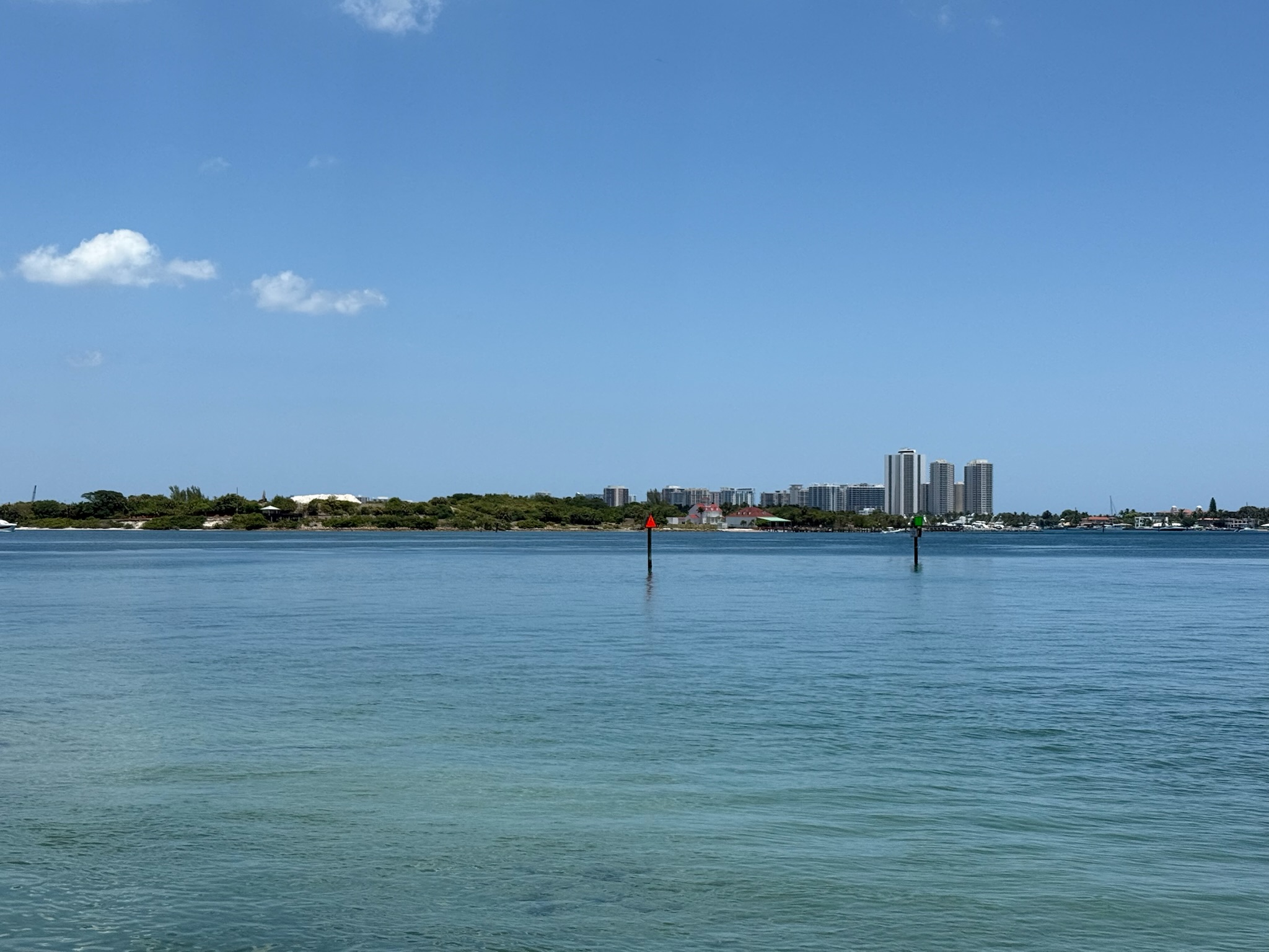 Here was the view looking northeast towards Peanut Island, Singer Island and the Lake Worth Inlet. Note the channel markers and how narrow the dredged channel really is.