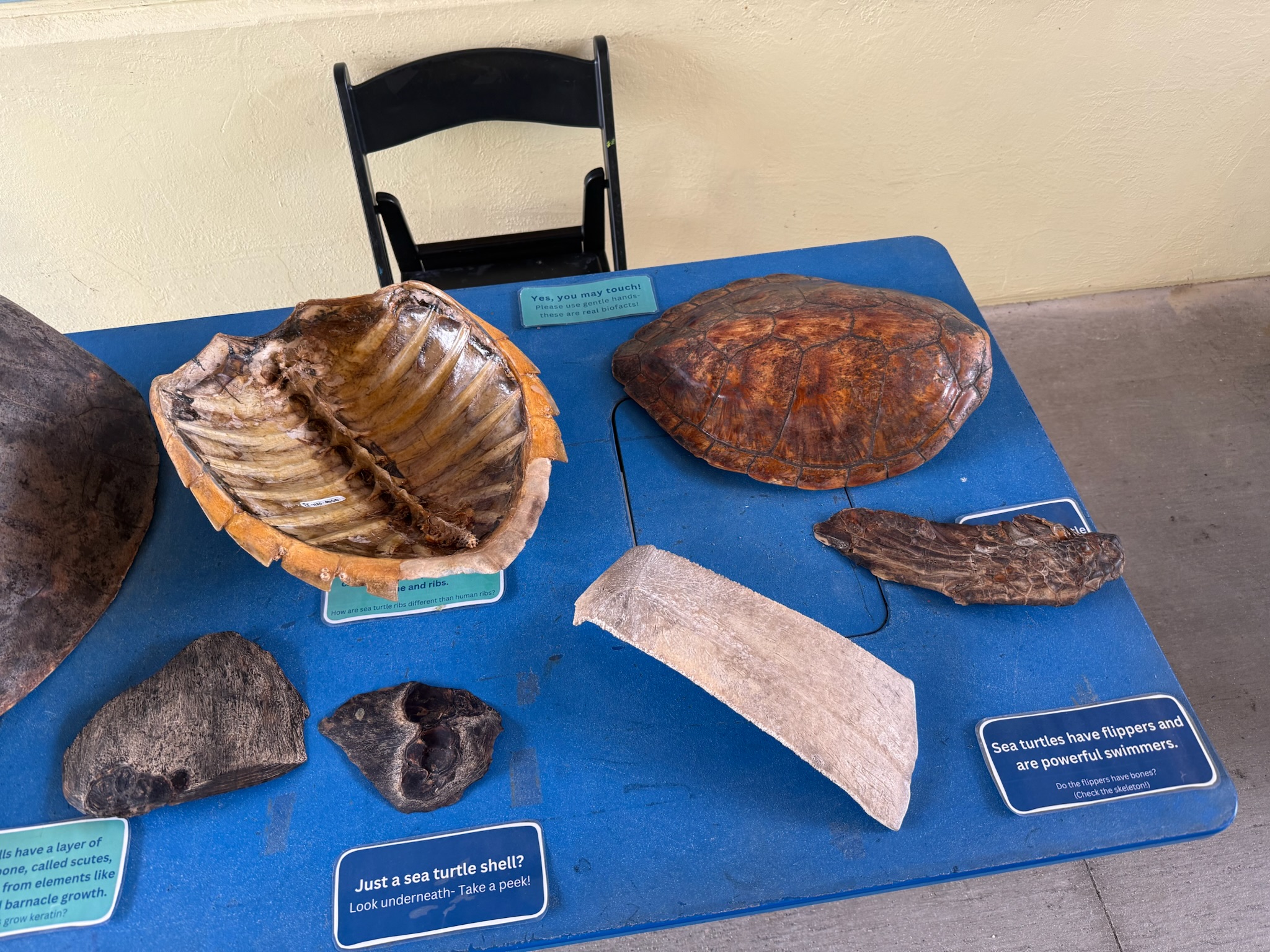 The displays had a lot of stats about each species, along with samples of bones and shells that could be touched.
