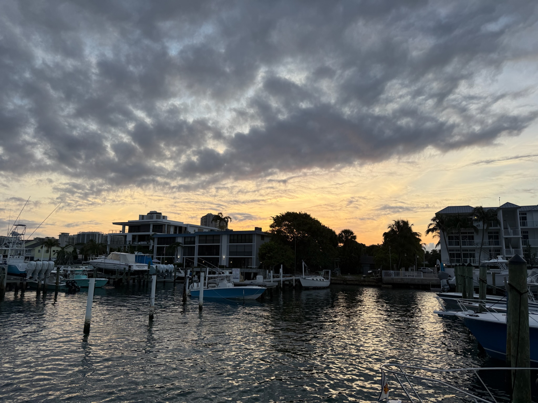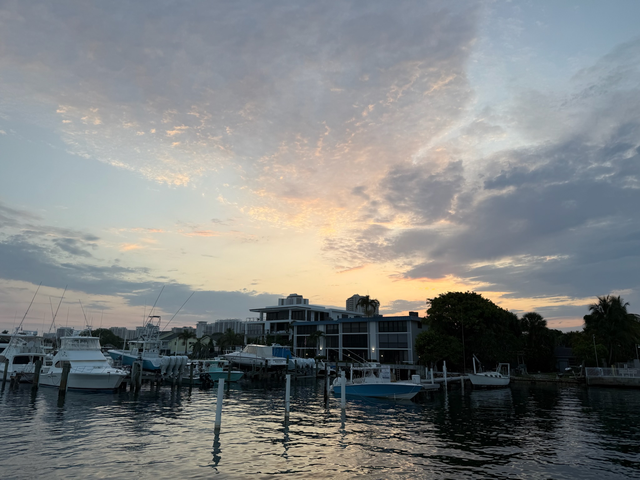 On Saturday, May 31, after an incredibly busy week, Eric flew back to Palm Beach so he could take Kosmos into the boat yard and oversee the work being done. Christi and Keith opted to stay in San Diego until Kosmos was back in the water. Here was twilight in Palm Beach.