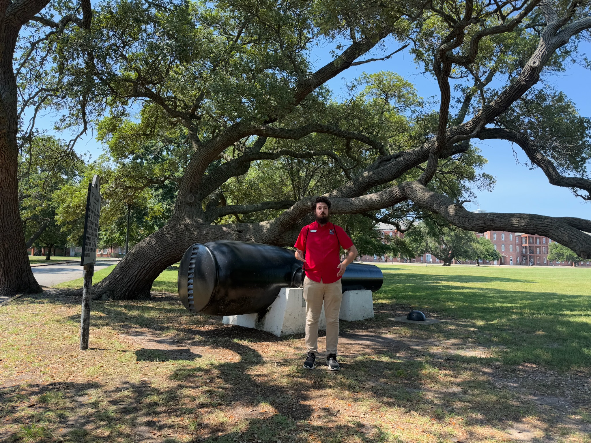 We stopped at The Lincoln Gun, the first 15-inch Rodman gun. It was cast in 1860 and had a 4-mile range. Fortunately, there were benches under a shady tree, making it a pleasant place to listen to the guide on such a hot day.