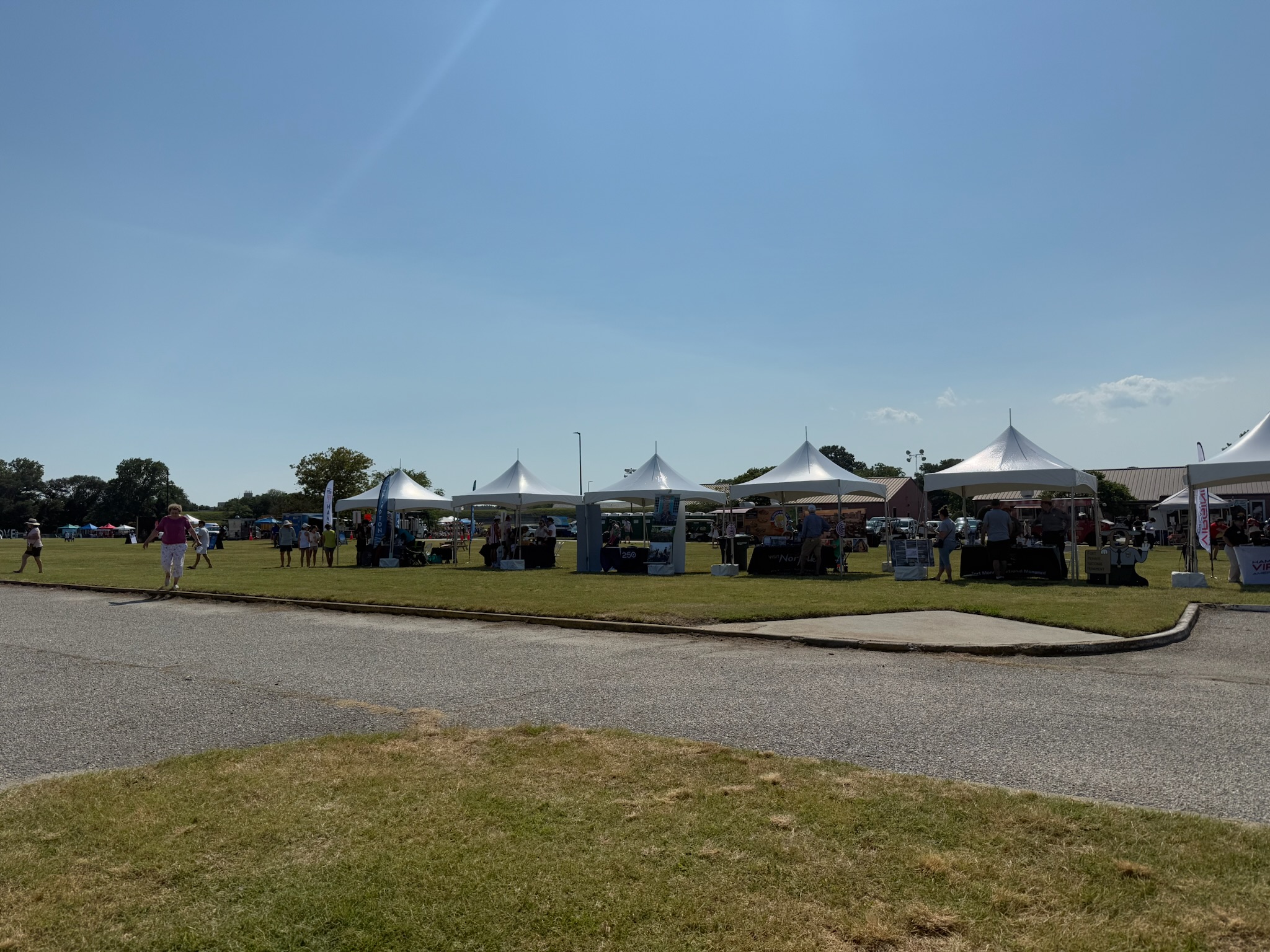 We perused the vendors. There were a lot of local tourist venues — Virginia has so many that we were overwhelmed by the choices of places to visit. There were several clubs, such as the Boy Scouts, sailing clubs, and religious organizations. There were a few booths selling interesting crafts. There were a few food vendors, and they all had long lines. It seemed each food booth that we saw setting up had lines form the instant they opened. There was an indigenous drum circle.