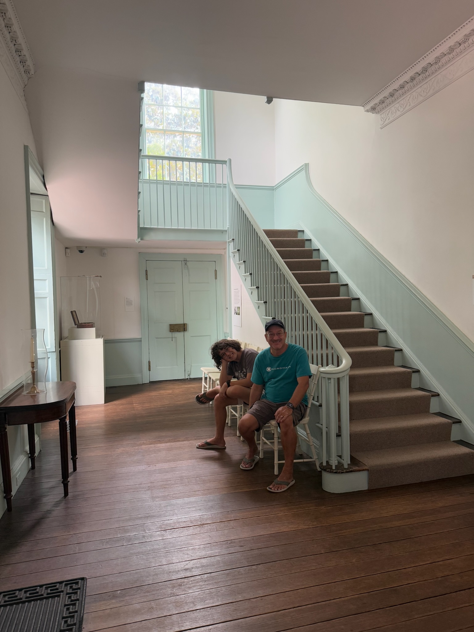 One of the most lengthy and fascinating stories the guides shared was about a set of English pistols, which were on display in the corner of the foyer, to the left of the door in the photo above. The summary was that John Myers (Moses’s son) owned the guns and loaned them to James Barron to use in a duel against Stephen Decatur. Decatur was running for president at the time and was favored to win. Had Decatur not been killed in the duel, Andrew Jackson would likely not have won the presidency. That duel changed the course of history.