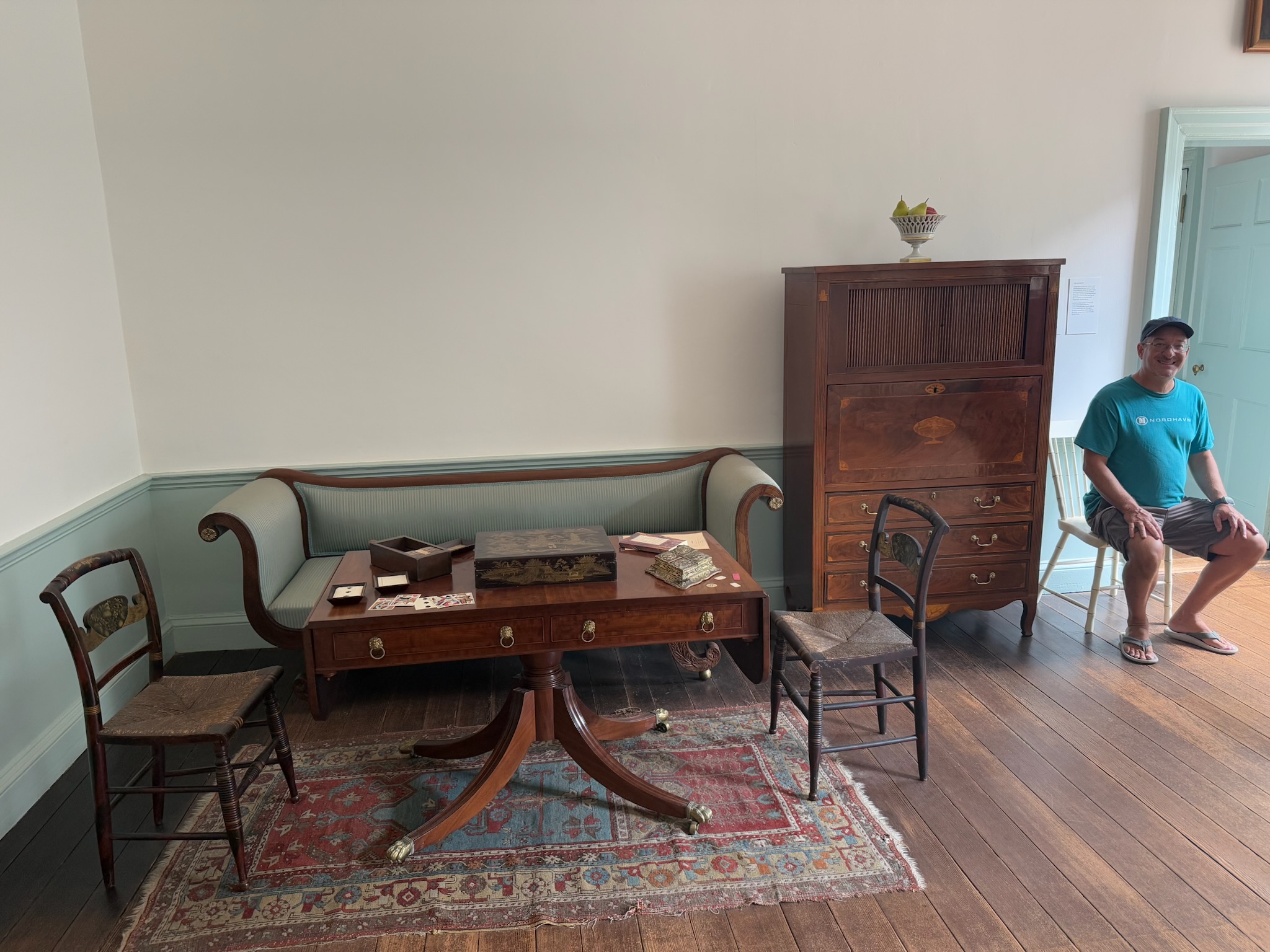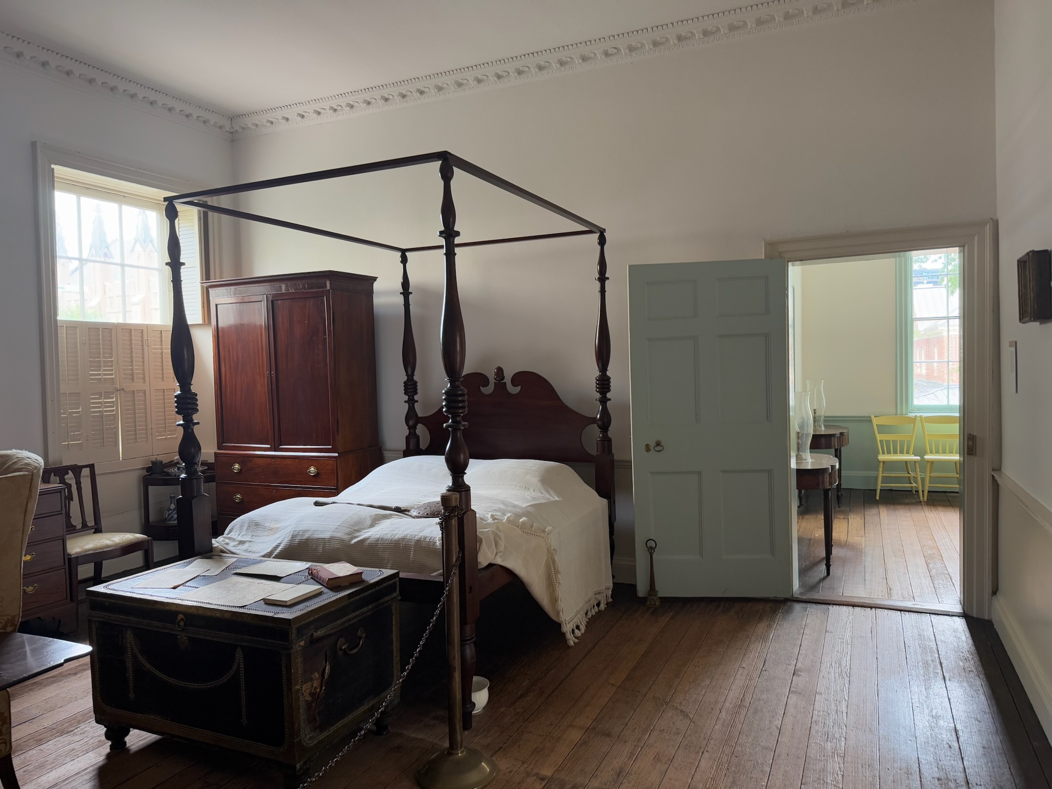 The house has been restored to look like it did in 1819. As the guide explained, they picked that year because Mr. Myers had filed bankruptcy, and there was an itemization of all of his assets — including the furnishings in each room of his home — at that point in time. Myers was able to pay off his debts without selling the home nor the majority of the assets. A large percentage of the furnishings listed were still in the home. Sadly, Moses outlived his wife and 9 of his children, so there weren’t many heirs. Barton Myers was the last heir to occupy the home. When he died, his wife Katherine didn’t want the house or furniture, so in 1931 she sold it all to the city under the stipulation that it would become a museum.