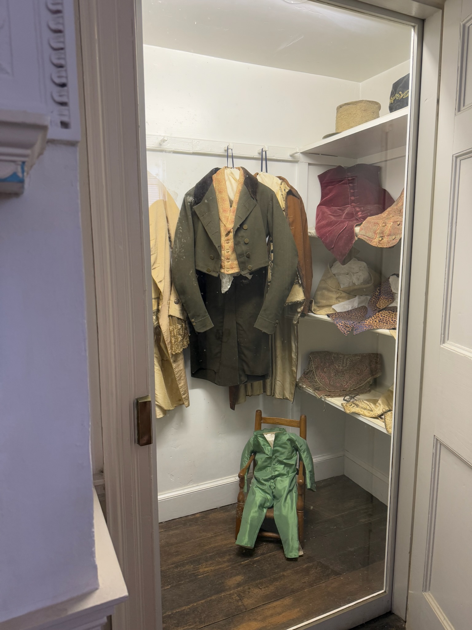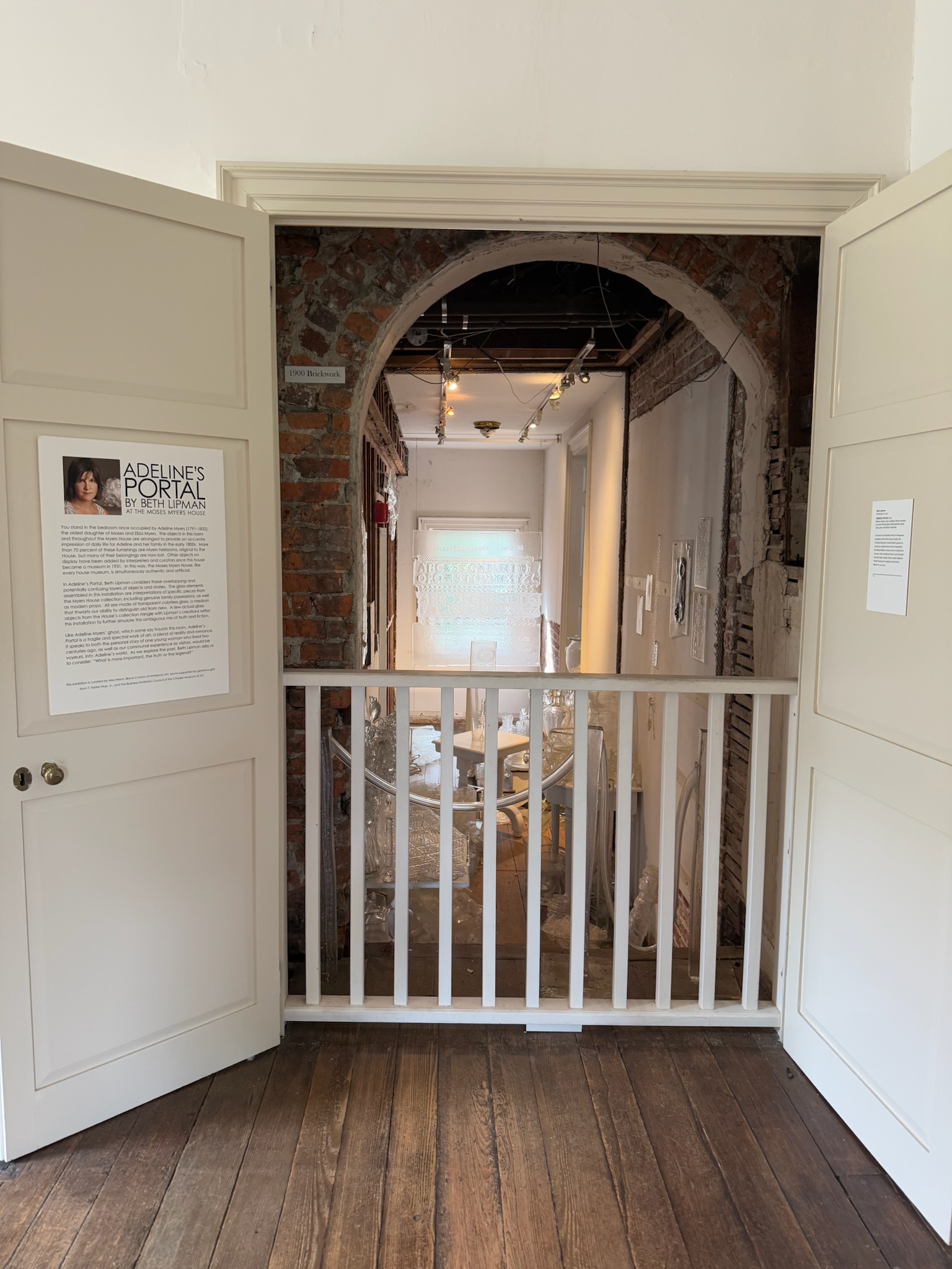 One of the doors in Adeline’s room opened into the upstairs of the utility area that we’d mentioned. The museum had turned that space into an odd display — they put a bunch of clear glass objects on exhibit. About 70% of the objects were heirlooms that came with the house. The other 30% were recreations based on descriptions in various records.