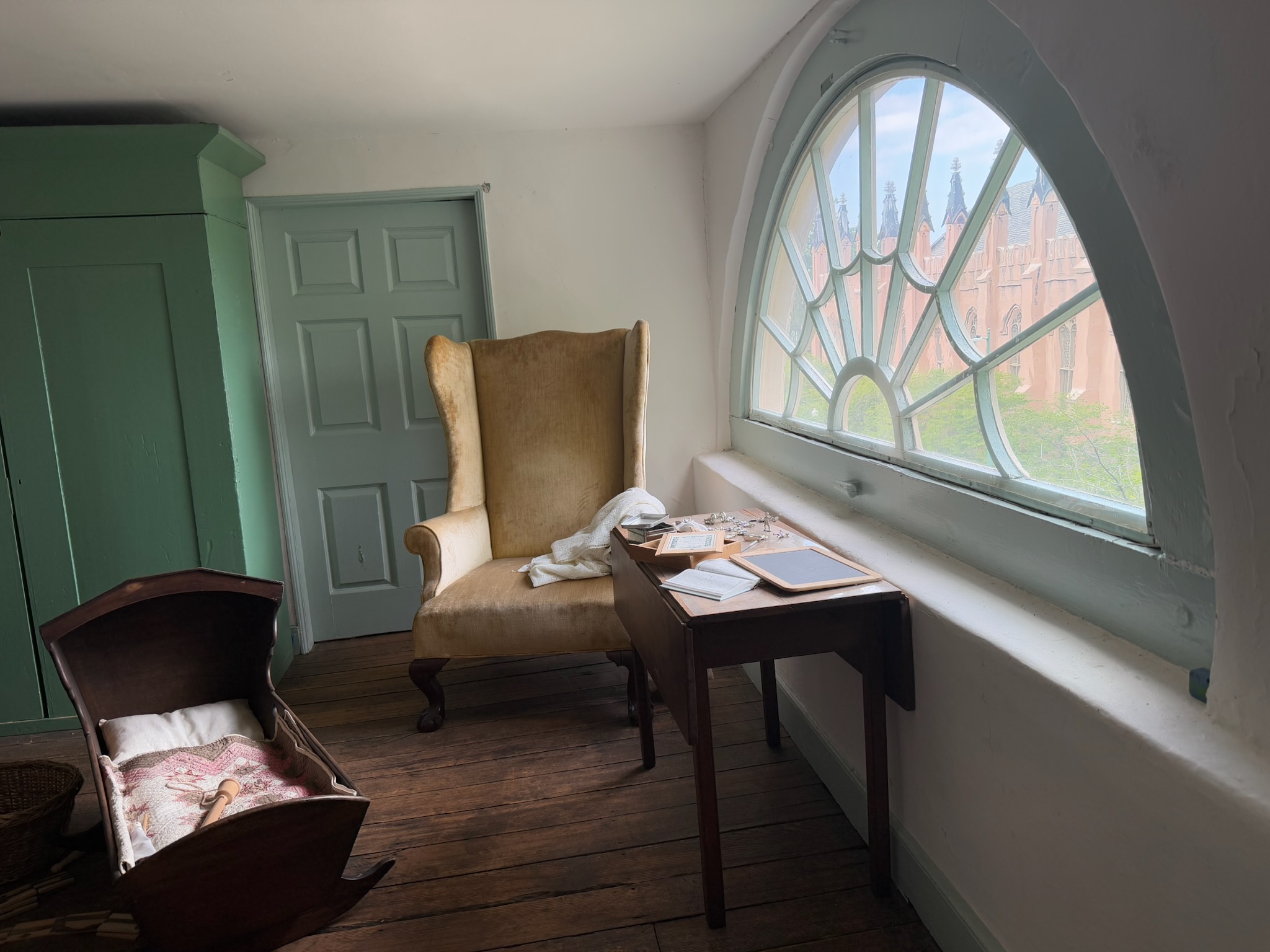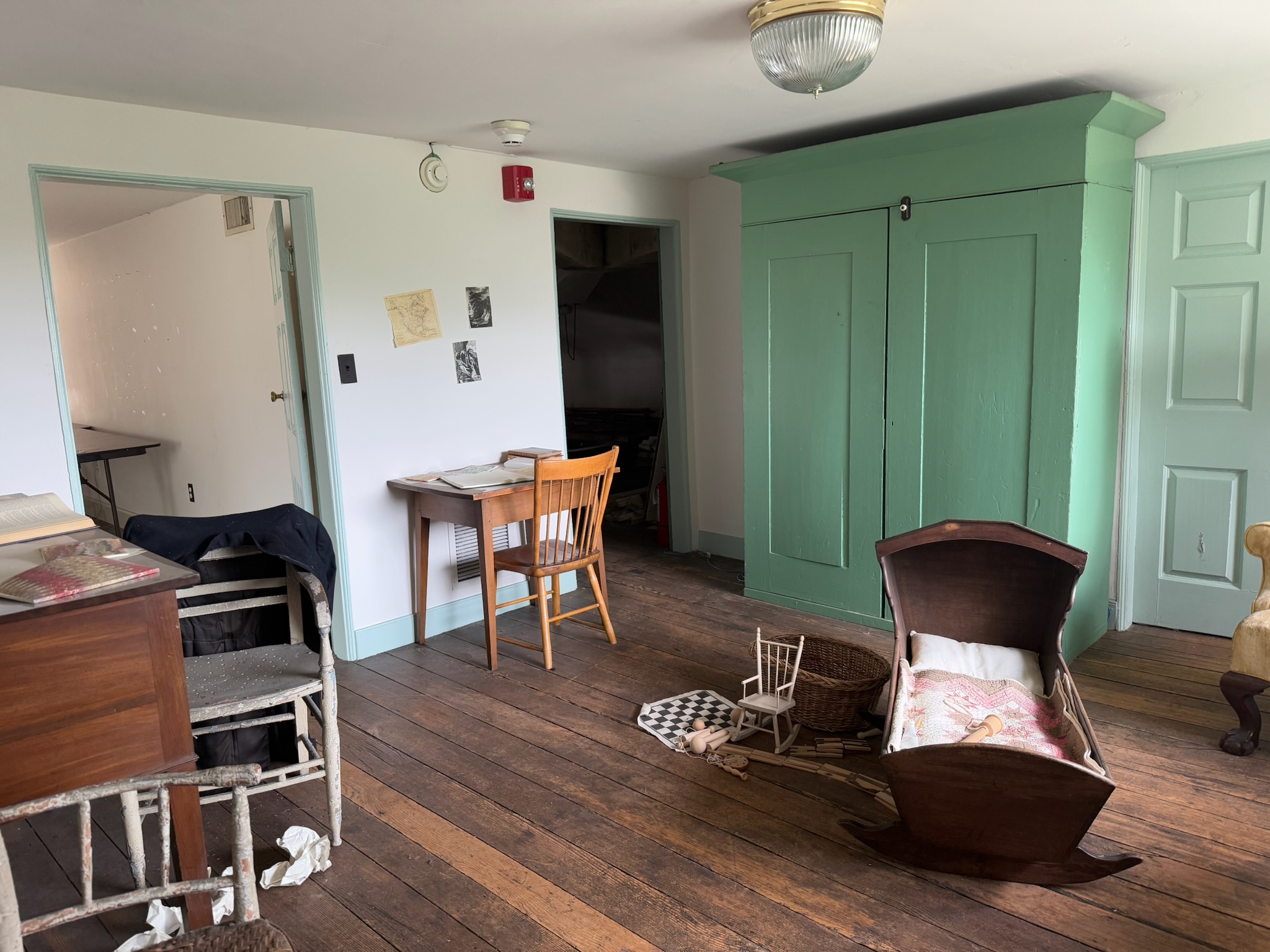 From the second floor, we moved up to the finished attic. We weren’t allowed to go into the space, only view it from the top of the staircase. The guide said the children lived up there until they reached a certain age (we can’t remember now… maybe 9?) and then were allowed to move to the second floor. Once all the children were grown, one the adult children still living in the house made the attic his bedroom, saying that he liked looking out of the window up there.