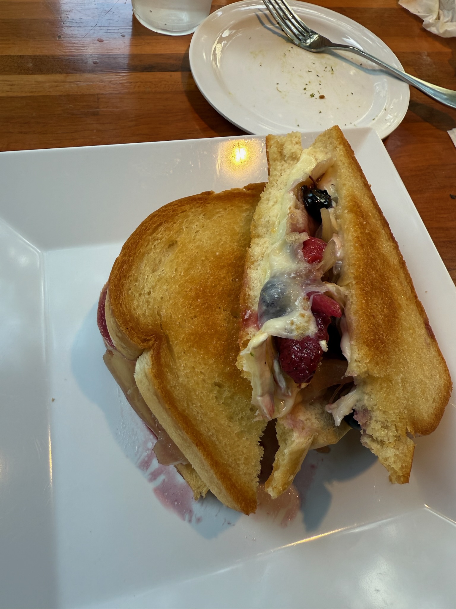 The menu had some very unique grilled cheese choices. The waitress said that the menu was seasonal and changed every three months. Christi ordered one with brie and Swiss, prosciutto, caramelized onion, and a lemon-thyme-berry compote on sourdough. It reminded her of the cranberry brie panini that she’d gotten in Deltaville.