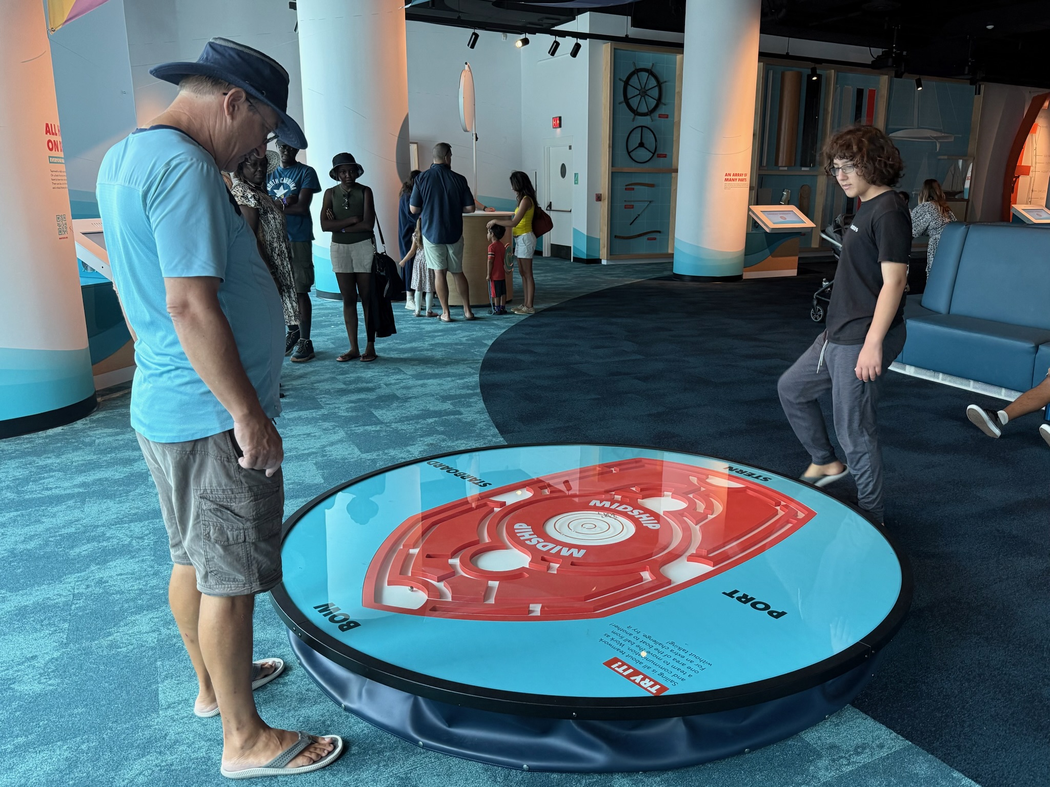 We moved on to the next exhibit, which was about the history of Norfolk. There were signs with bits of trivia. For example, in 1827, the Norfolk Naval Shipyard solved the problem of fixing hulls by creating the dry dock — they’d flood a chamber with water, float the ship in, then remove the water from the chamber. Portsmouth rightly claims credit for opening the first dry dock since Norfolk Naval Shipyard is actually in Portsmouth, not Norfolk.