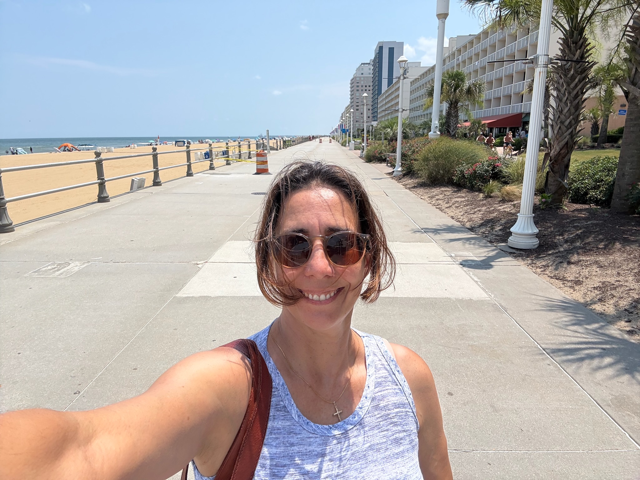 It was your standard beach boardwalk: sand/ocean on one side of the walkway and what appeared to be a long line of tall buildings on the other side.