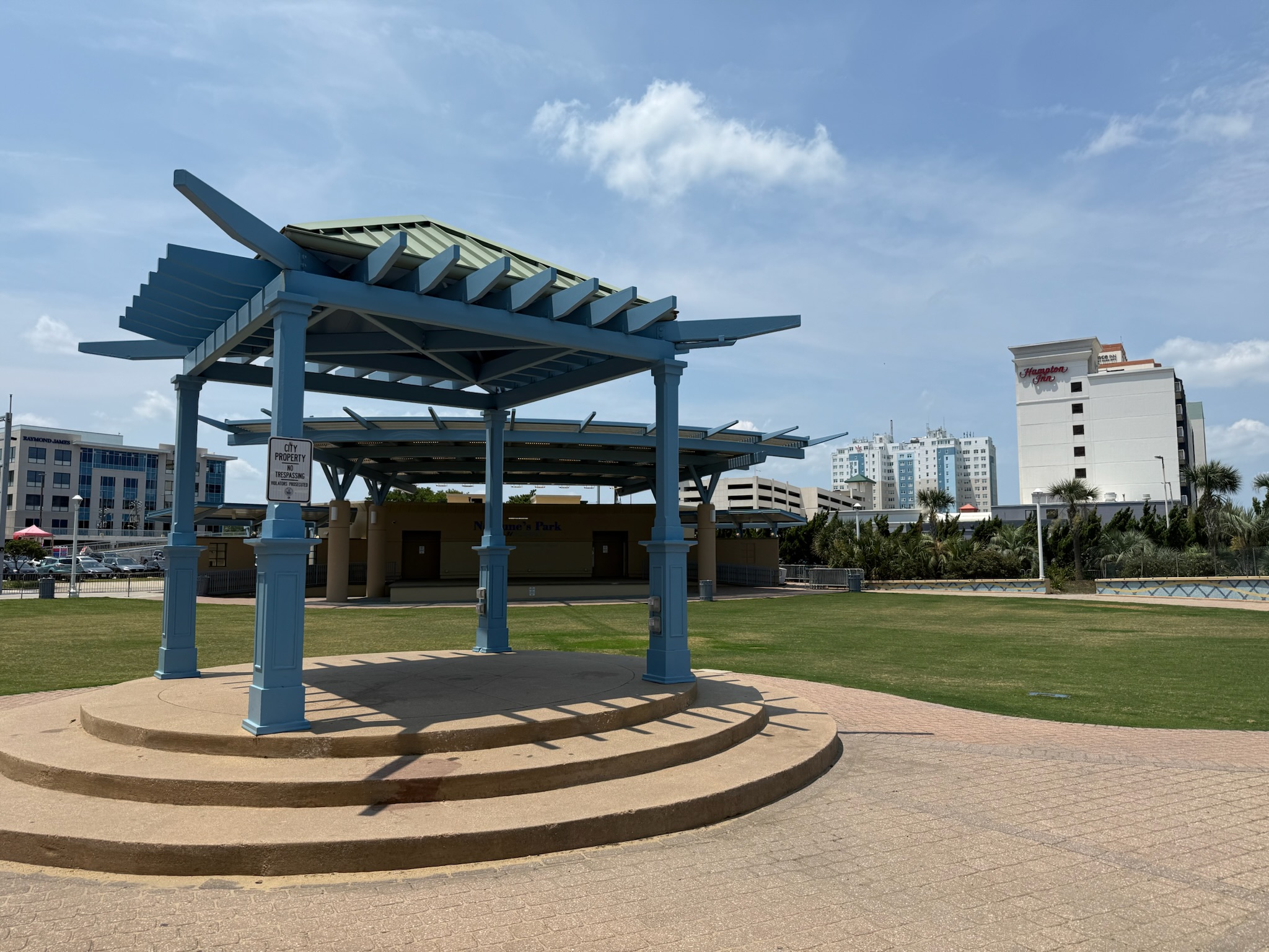 Conveniently enough, it was across the street from Neptune Park, which was one of the sites listed on the “Top 10 Things To See in Virginia Beach.” This was the park. It was closed as they were preparing for a special event there that was scheduled for later in the evening.
