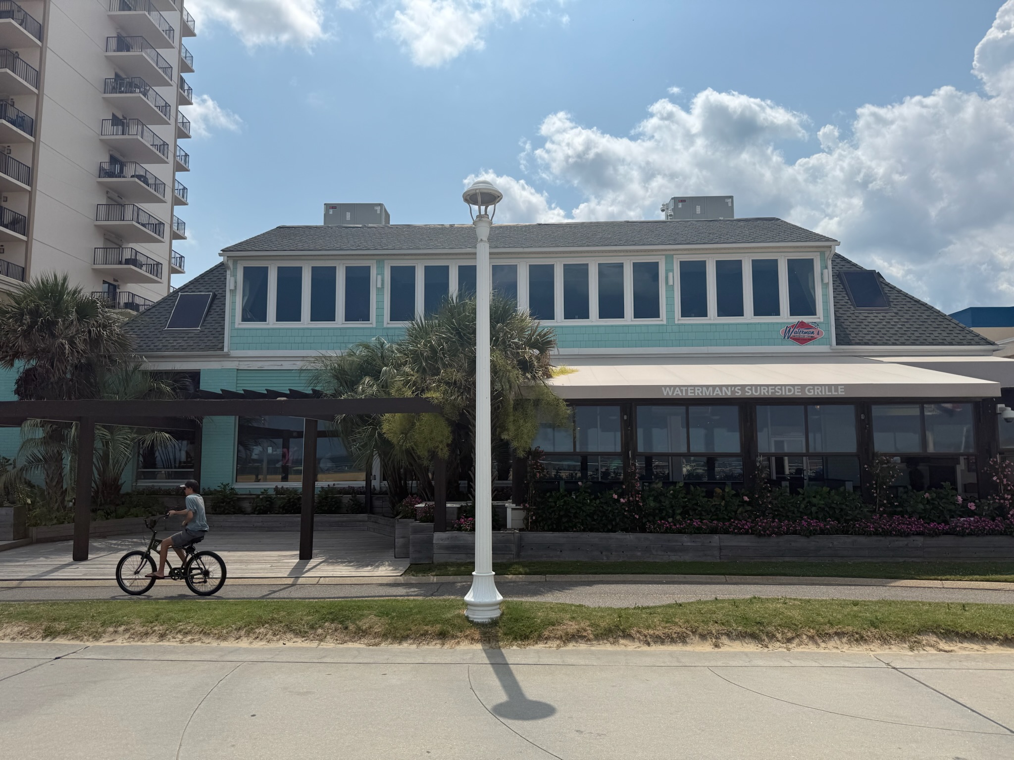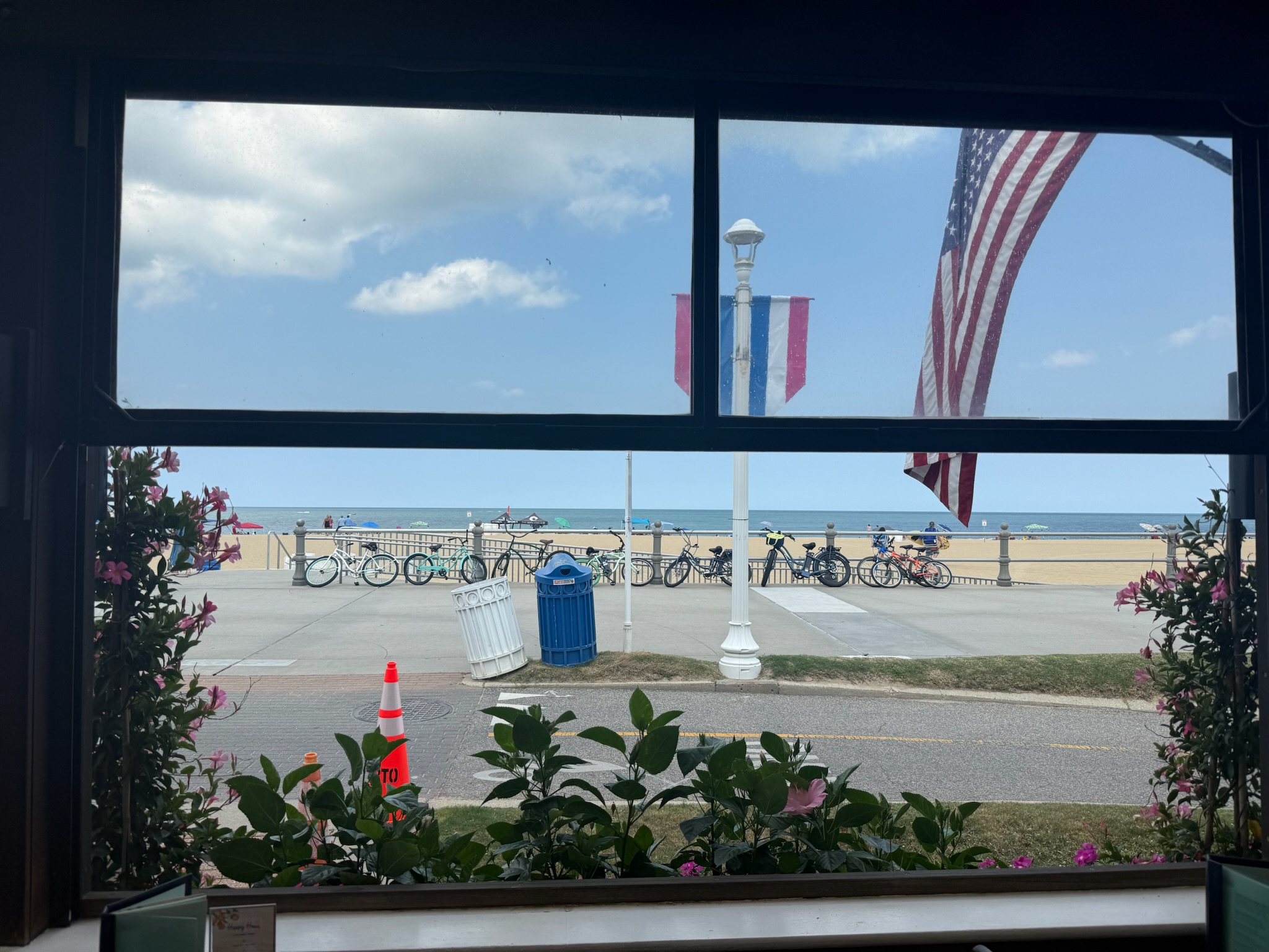 Waterman’s was established in 1981 and was one of the few low buildings left on the boardwalk. It was apparently famous for originating an alcoholic drink called the Orange Crush, which had fresh squeezed orange juice, Sprite and orange vodka. Eric and Christi both tried one. This was the view.