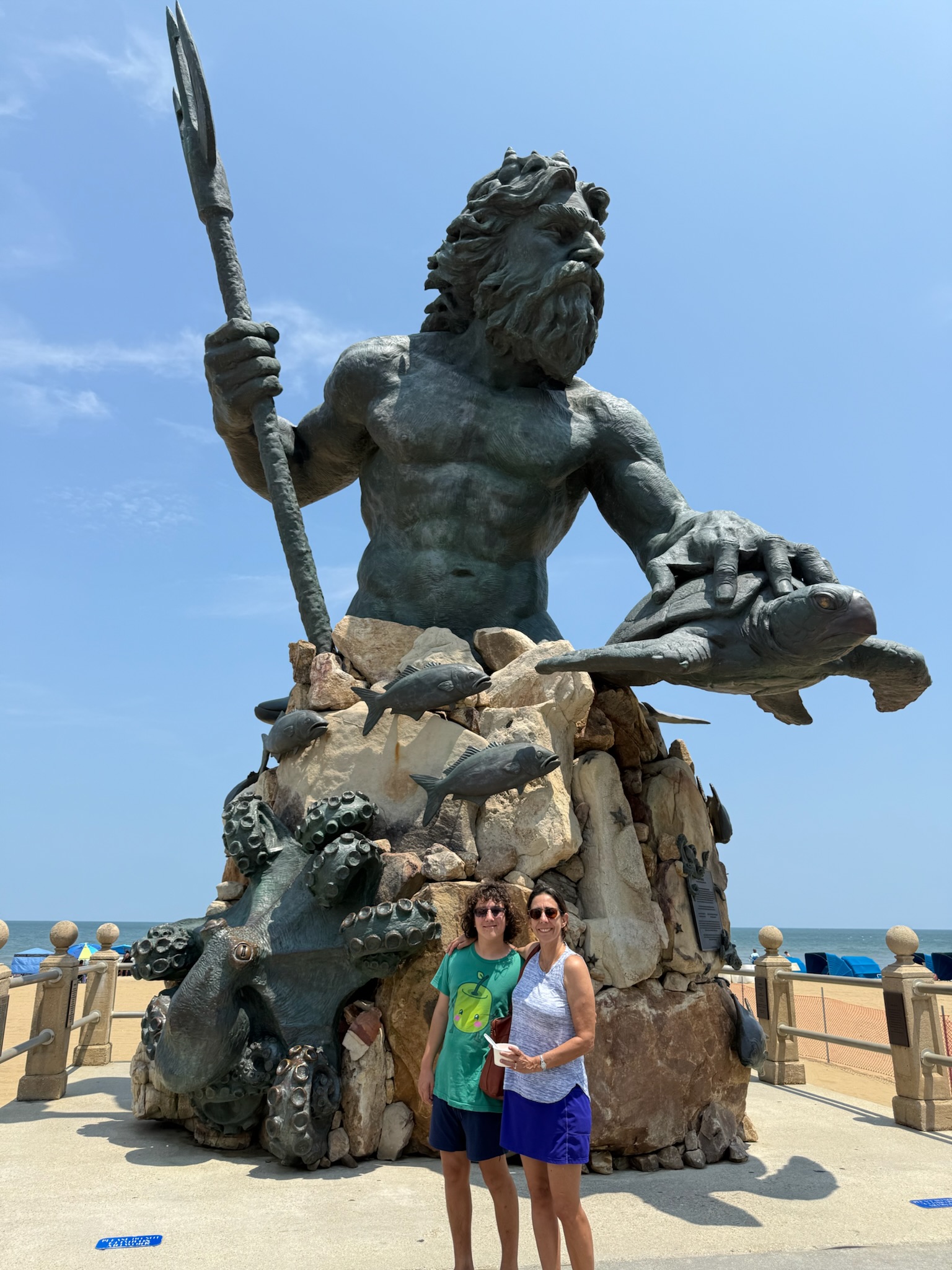 The giant Neptune statute was on the boardwalk near the park.