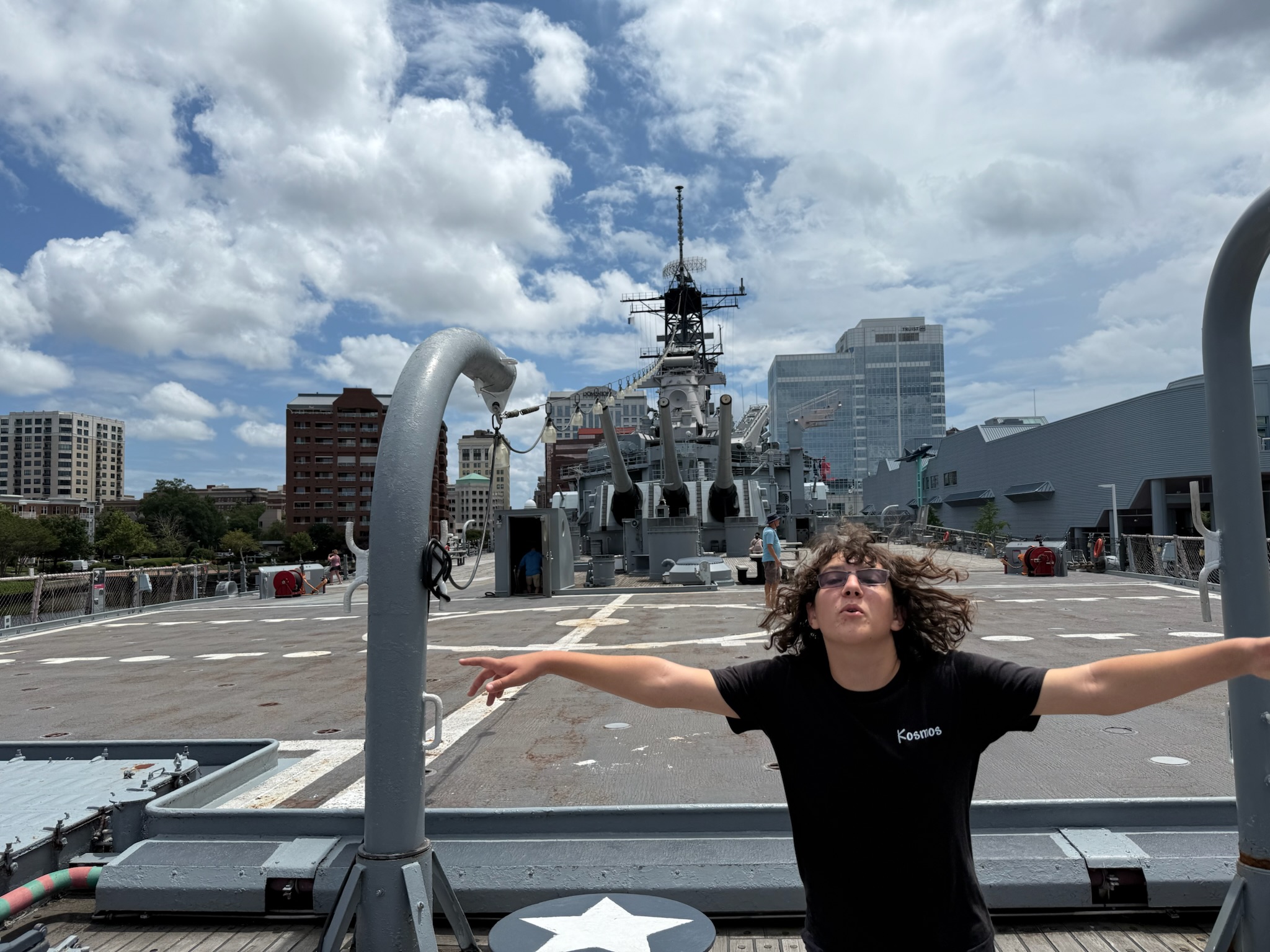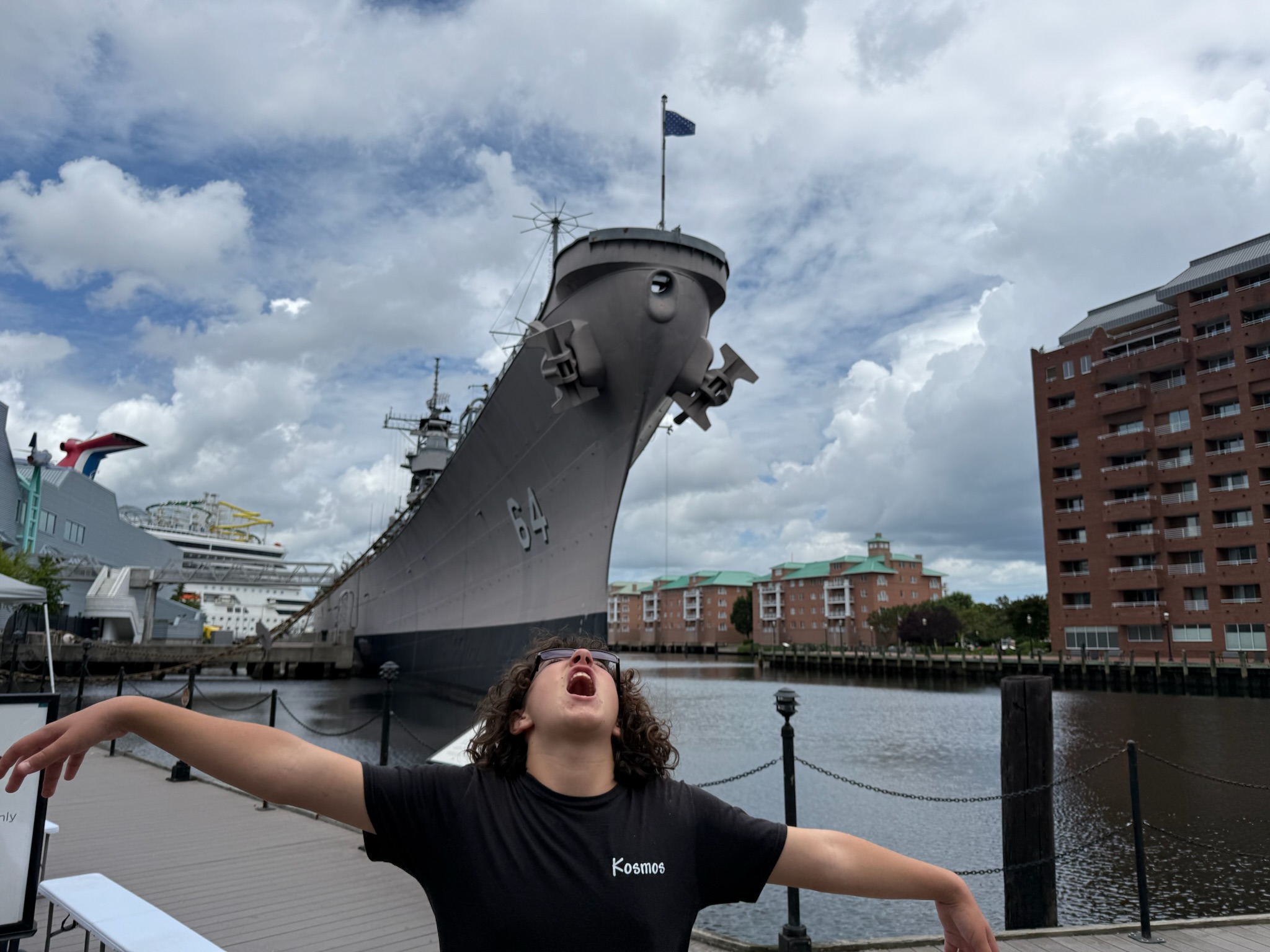 On Sunday, we went to a nautical museum where they had an actual battleship that you could tour. We went to the battleship and looked around one of the decks. I got super claustrophobic and hot, so we didn’t tour the entire thing. There are some crazy things in a battleship. There was a dentist, a post office and even a donut factory! After the battleship, we looked at the museum, which was pretty interesting. I learned that the mascot for the naval training academy is a goat!
