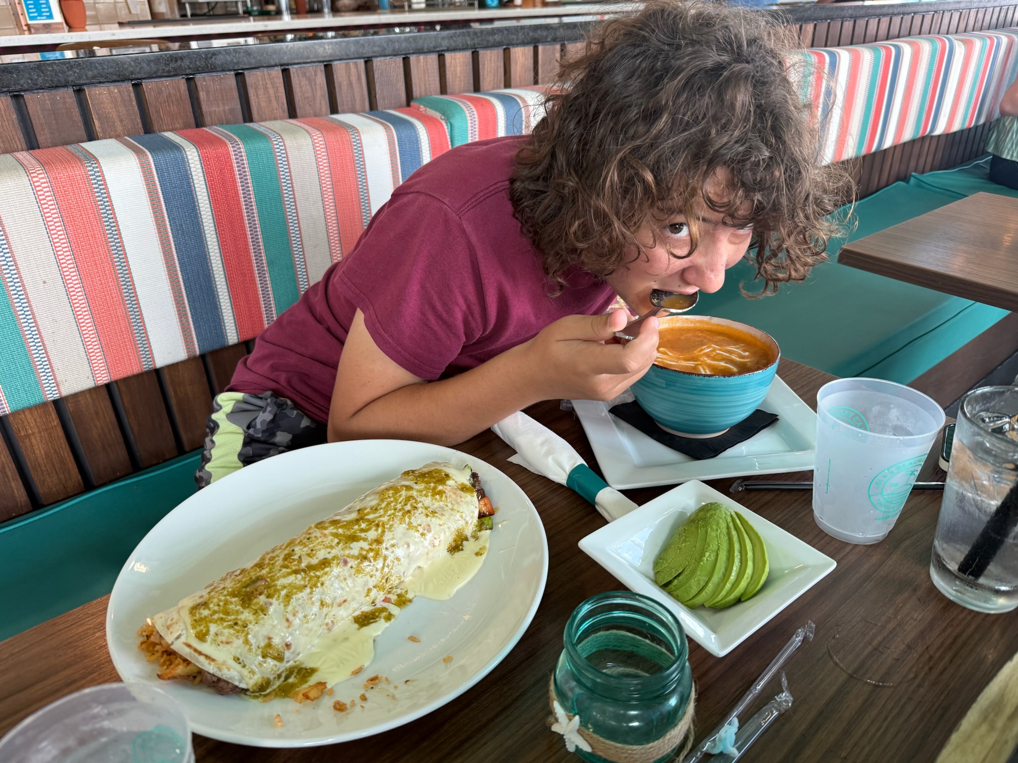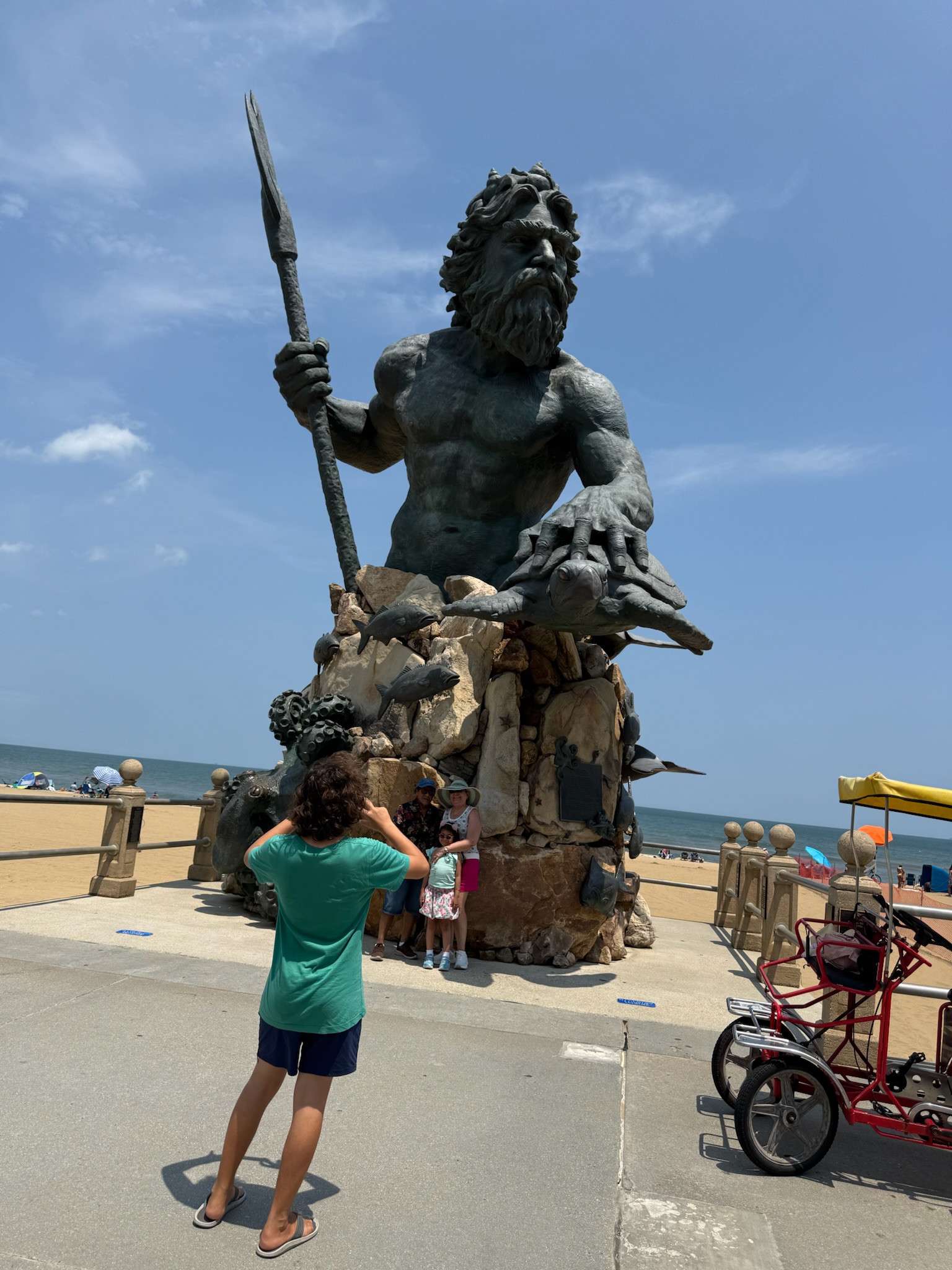 On Tuesday, we had lunch at a Mexican restaurant, but mom’s food had pepper in it. Then we went to pick up my new glasses and then went shopping at Costco. On Wednesday, we went to West Marine and Carvel. Then we went to the boardwalk and took a picture with a really cool statue. After the boardwalk, we went to Miss Roxy’s house and hung out for a while, then we wet to a restaurant on the beach for drinks. After drinks, we went to my mom’s friend’s house and hung out with them for a while. On Thursday we didn’t do much in the morning, but in the afternoon we went to Portsmouth to hang out at a kid boat. I had a good time. On Friday we had lunch at a really good Mexican food restaurant, then we rested for the rest of the day.