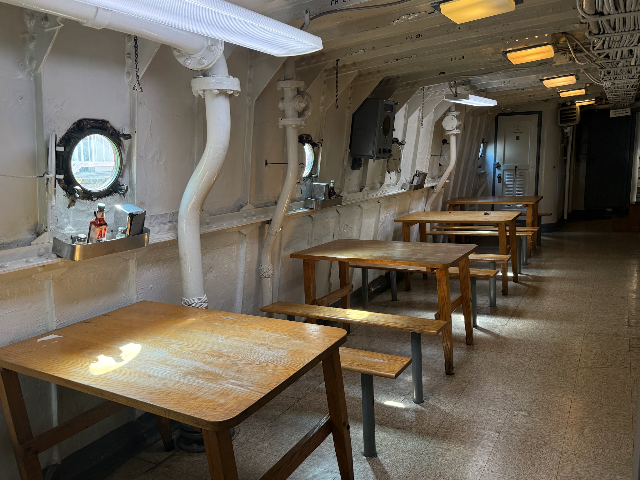 We followed the port (left side of the boat) hallway to the mess hall (dining area).