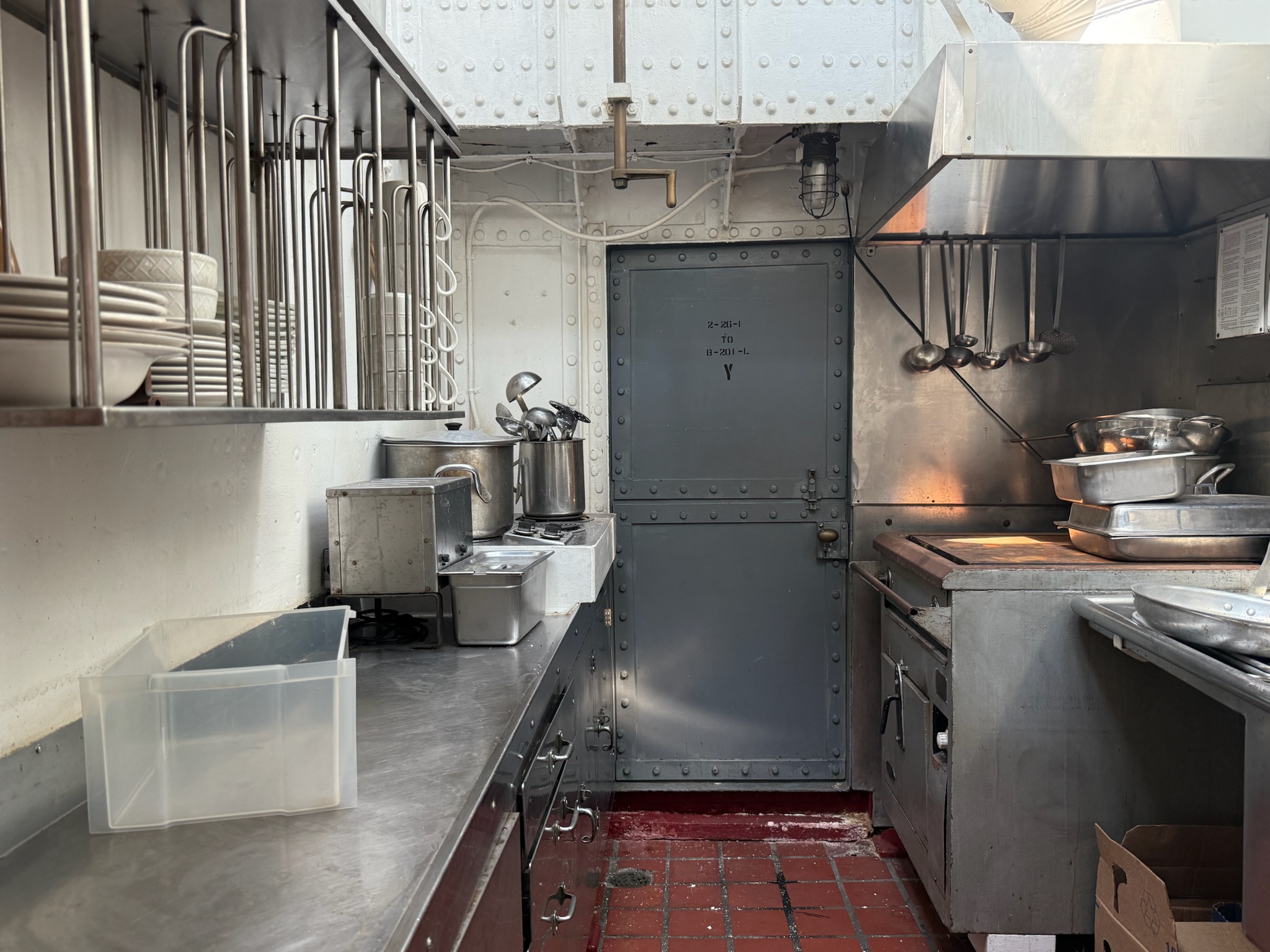 Next to the mess hall, in the center of the ship, was the galley. It was state of the art for its time, and even had a refrigerator, which was a rare luxury in those days.