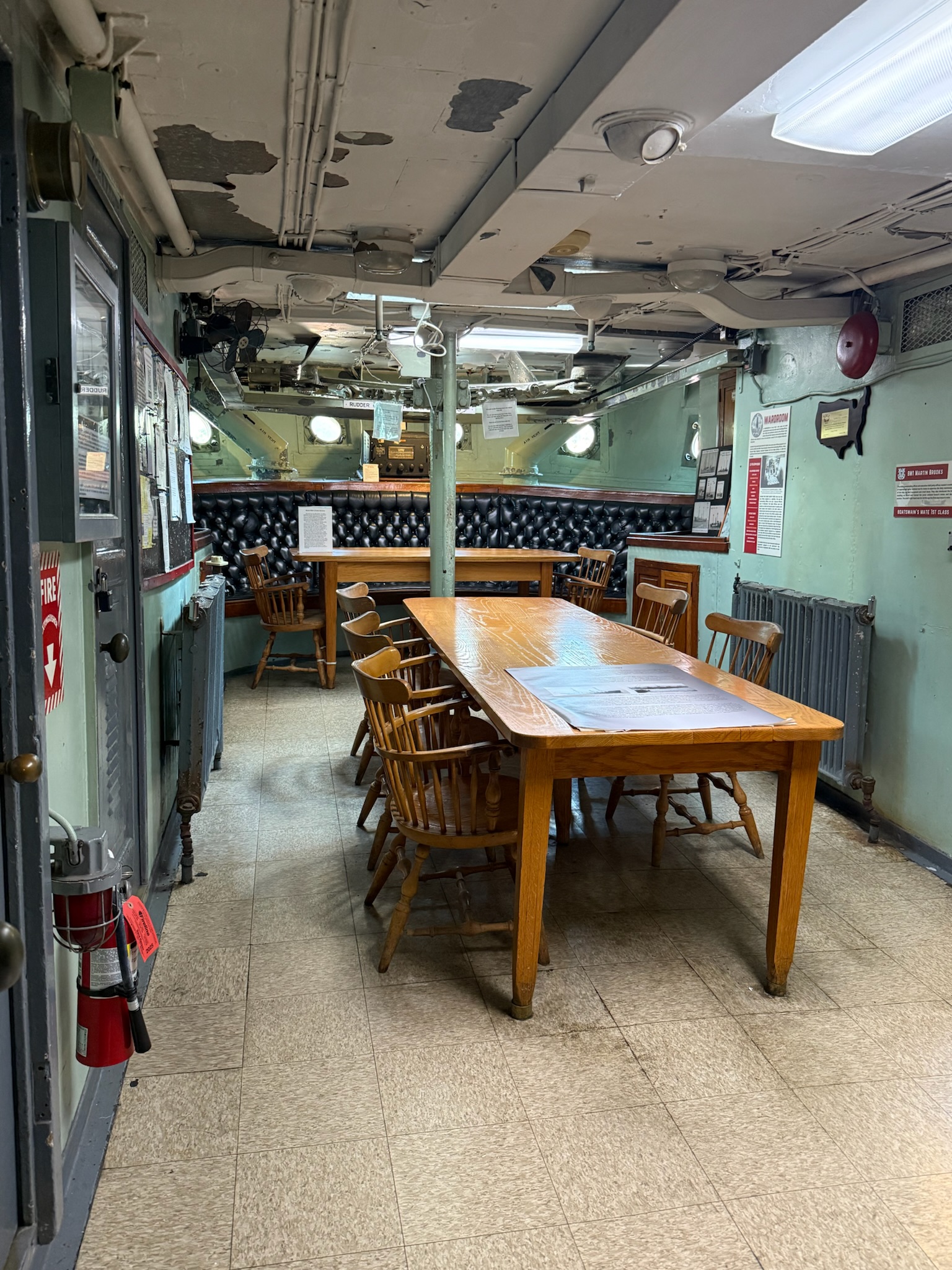 Aft of the dining area/galley/empty area was what the wardroom (where the officers ate and lounged), and there were officer’s quarters off to the sides. The radio room was also back here, but it was not open for viewing. A sign said that the equipment had been stripped out of the room before the City of Baltimore had acquired it and it was now used as a private office.