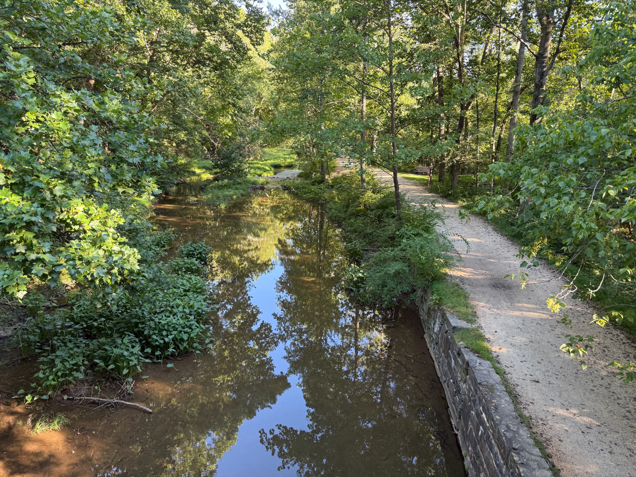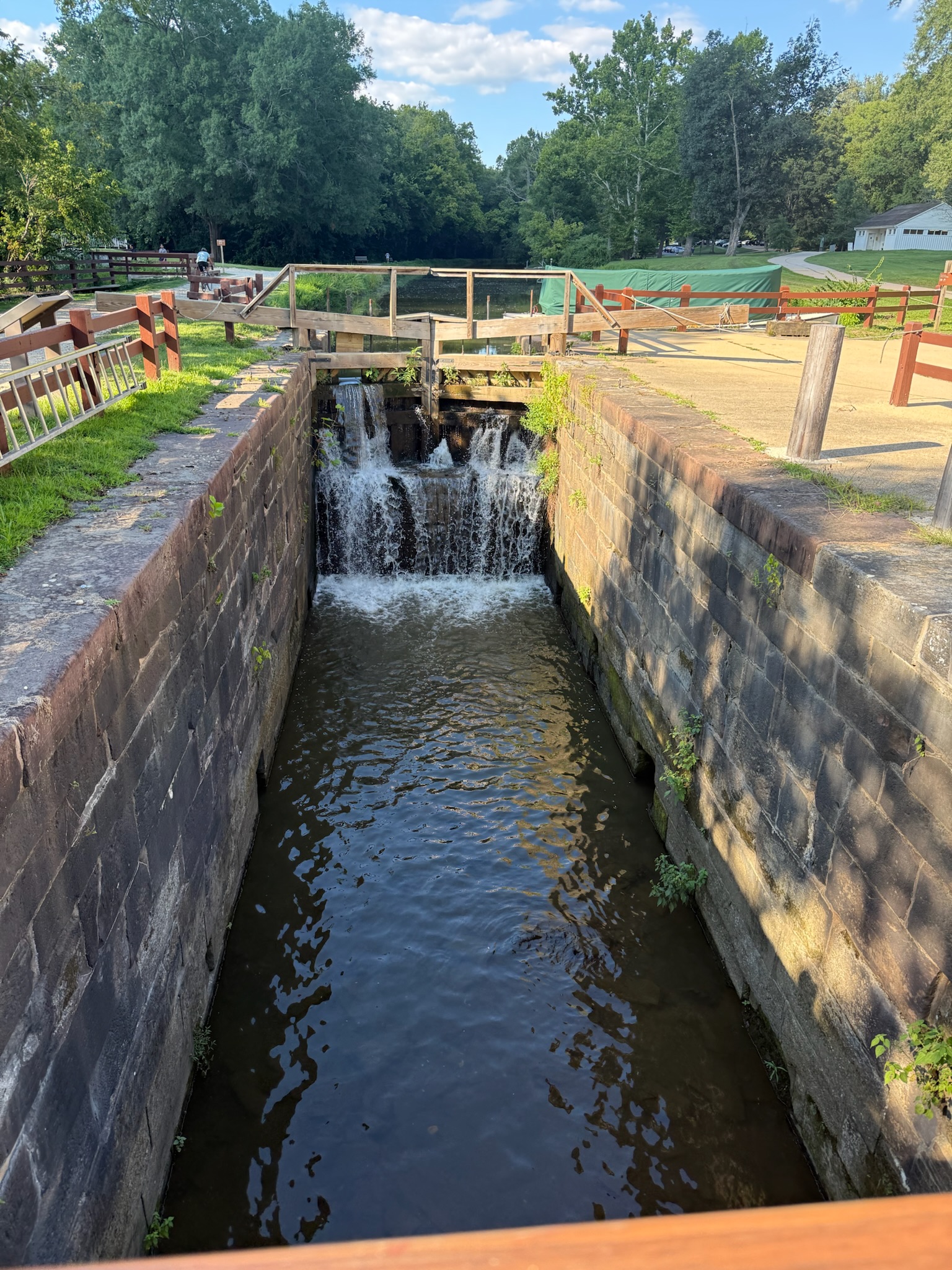 The walkway crossed over an offshoot of the canal with a lovely water fall.