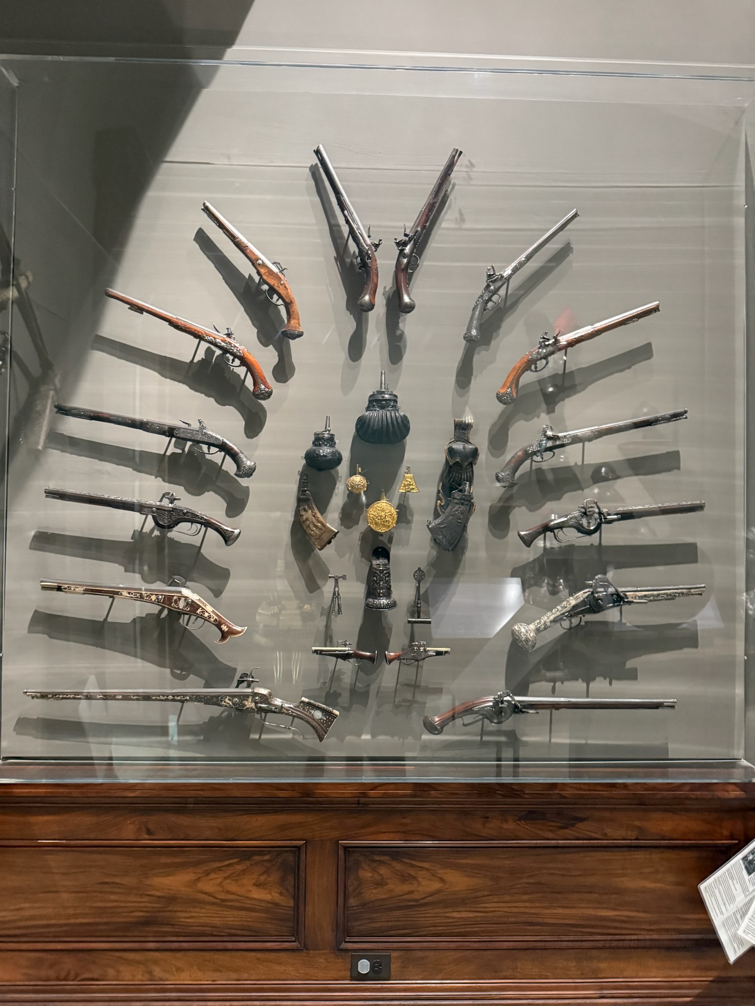 A sign said that armor was often decoratively displayed in the entryway of a wealthy person’s home. Ah, so the weapons display at the Virginia Governor’s Palace wasn’t as unique as we’d thought.