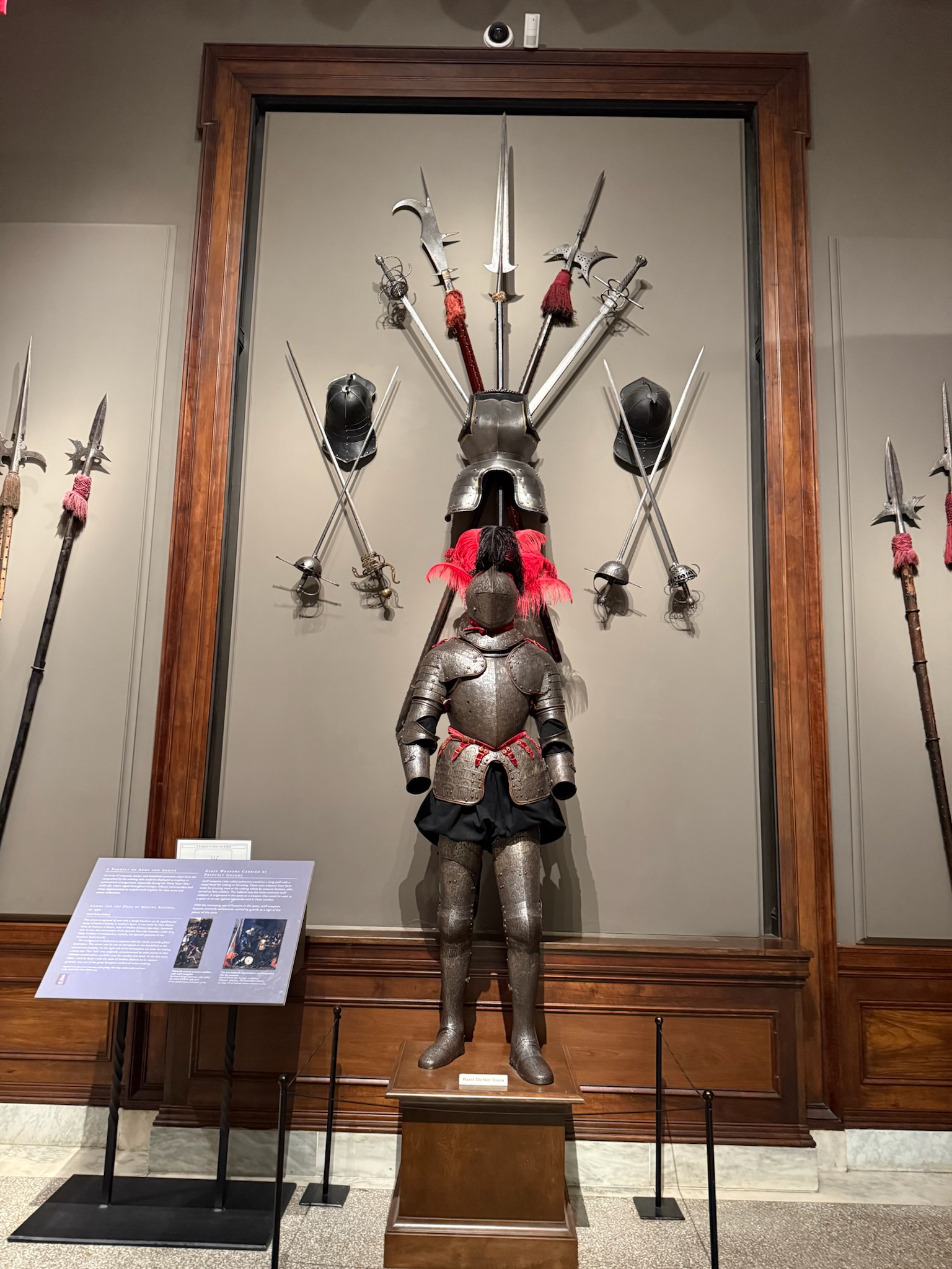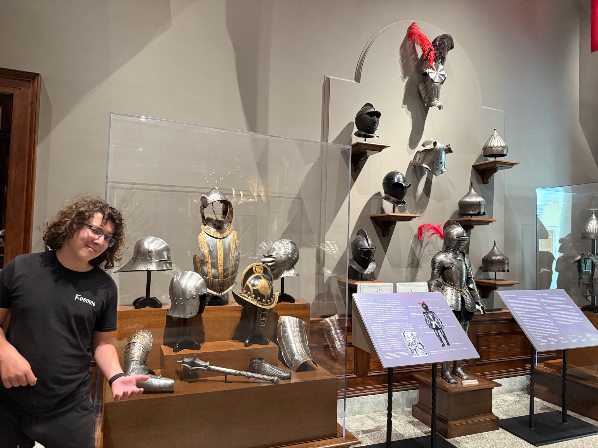 Like the third floor, there was a series of rooms that ran along the north and south sides of the courtyard. While the rooms on this floor were probably about as wide as above, they weren’t nearly as long, so there were probably 3 – 4 rooms in the same space as one room above. Keith hit pay dirt in the very first room that we walked into! It was an exhibit that was filled with armor and weapons. Keith was finally happy!