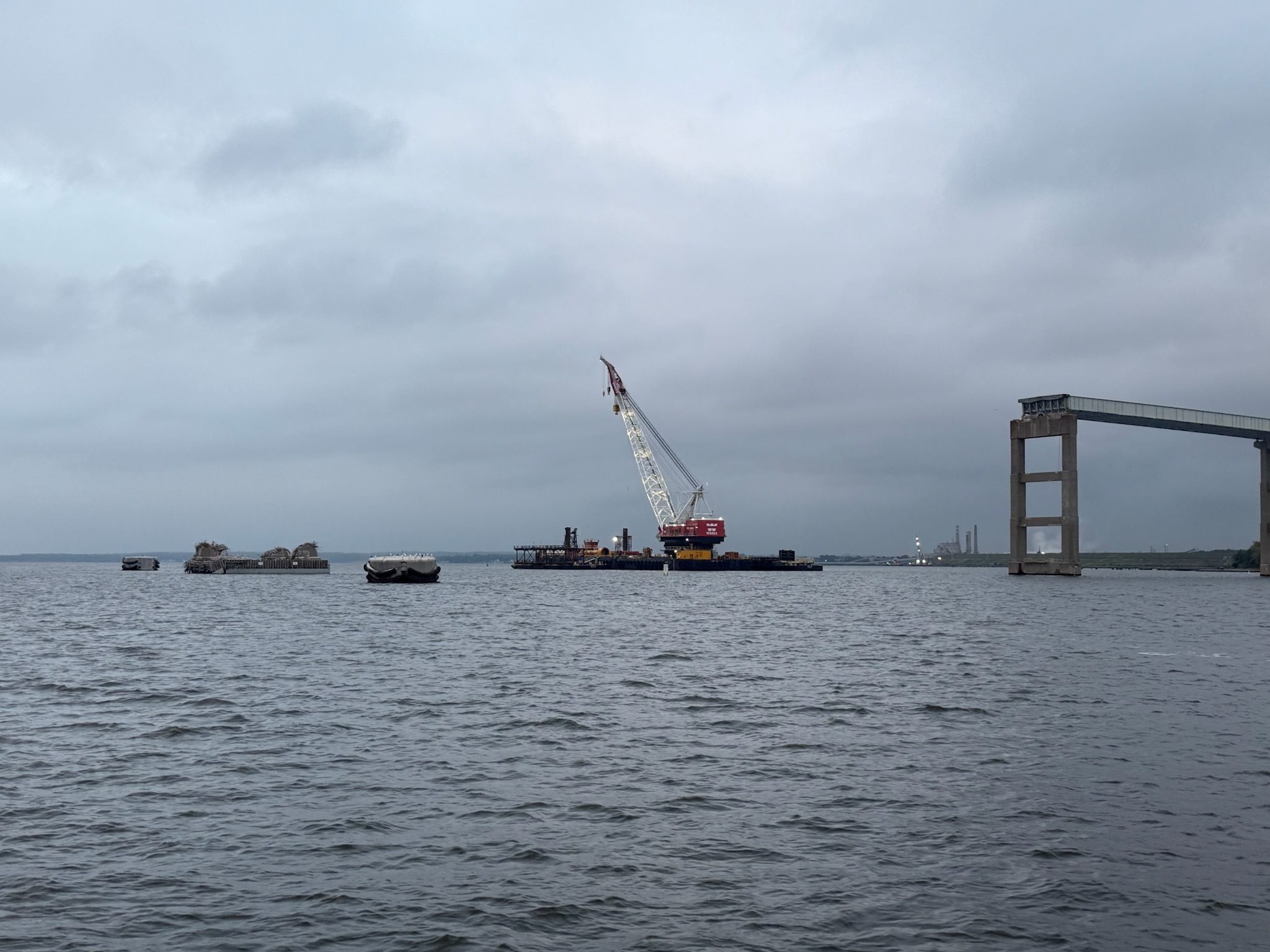 As soon as we’d turned on the radio, we heard regular warnings to be careful near The Francis Scott Key Bridge as they were doing demolition work to the remains in order to clear the way for the construction of the replacement bridge. We were glad to hear they were finally getting started on a new bridge.