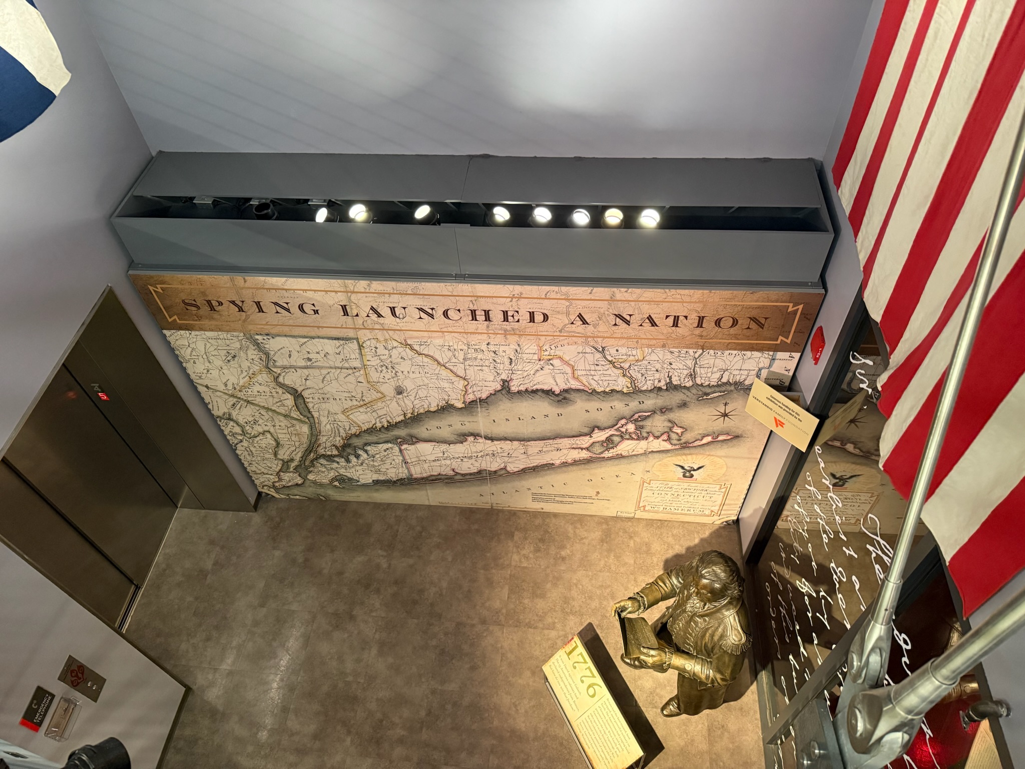 We walked down a flight of stairs and found ourselves in a display about the American Revolution, with a short film about George Washington’s spy networks. They were pretty clever. One woman communicated by hanging certain laundry on the wash line. Each item represented a message that could be seen from a distance.