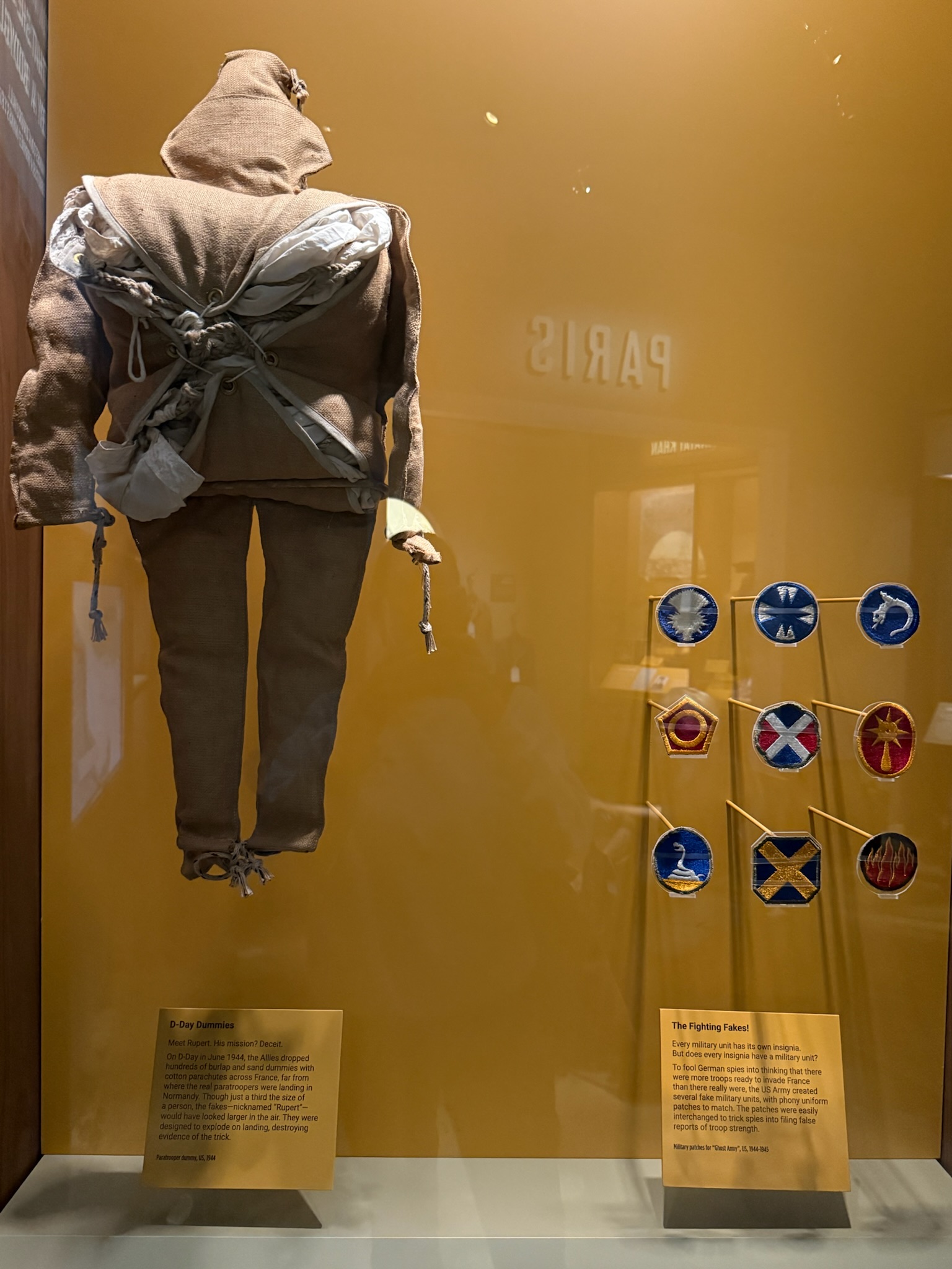 To add to the confusion, on D-Day, they dropped hundreds of these burlap and sand dummies with cotton parachutes all over France, far from where the real paratroopers were landing. The dummies exploded on impact, making the trick less obvious.