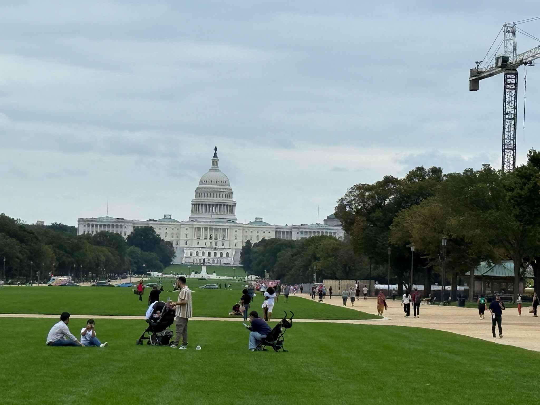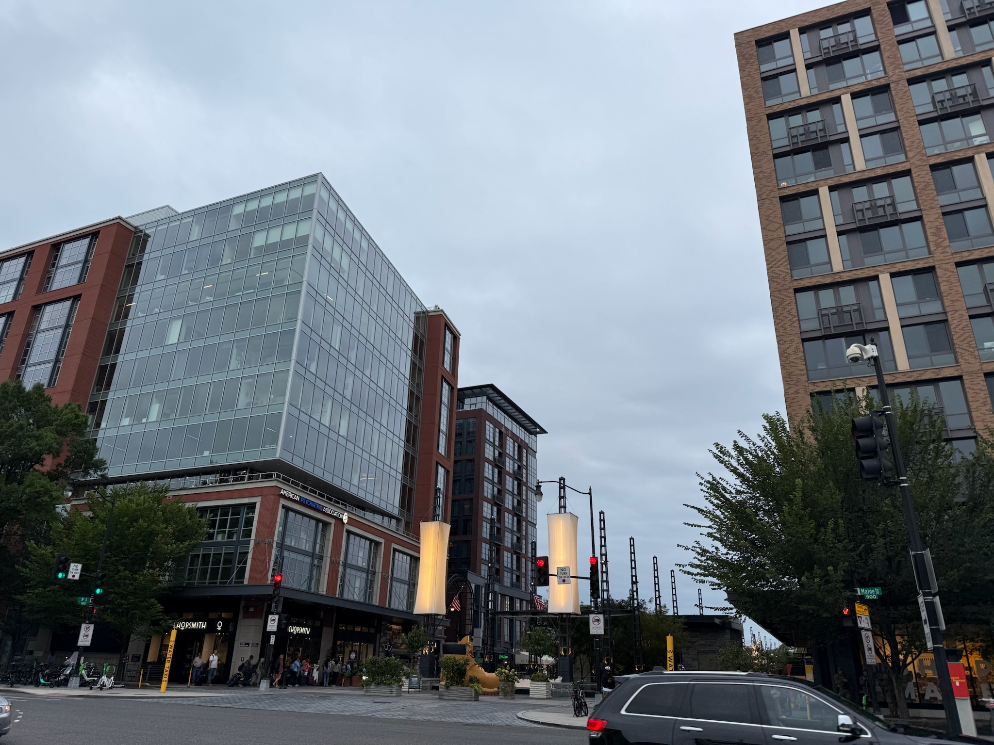 There had been a big tournament earlier in the day (we think it was pickleball, but we’re not 100% sure we’re remembering that correctly), and the white area in the center of the photo was where the event had taken place. There was a crew quickly disassembling the event area. To the left was the fence around the museum’s construction zone. It looked like they were digging up Jefferson Drive to replace the plumbing and/or electrical.