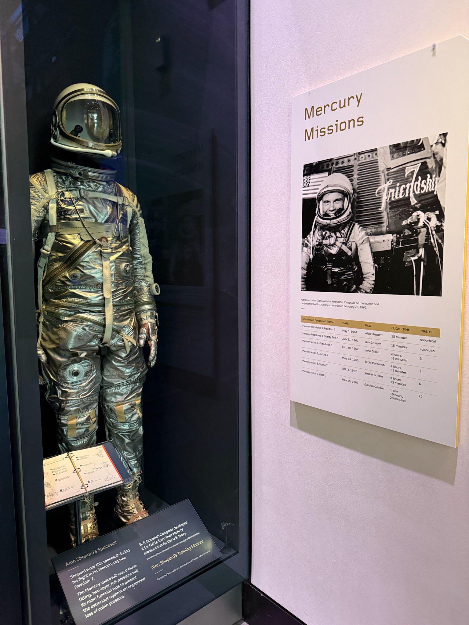 This was the suit that Shepard wore. In the early days, they were modified pressure suits like what was worn by pilots for high altitude flights.
