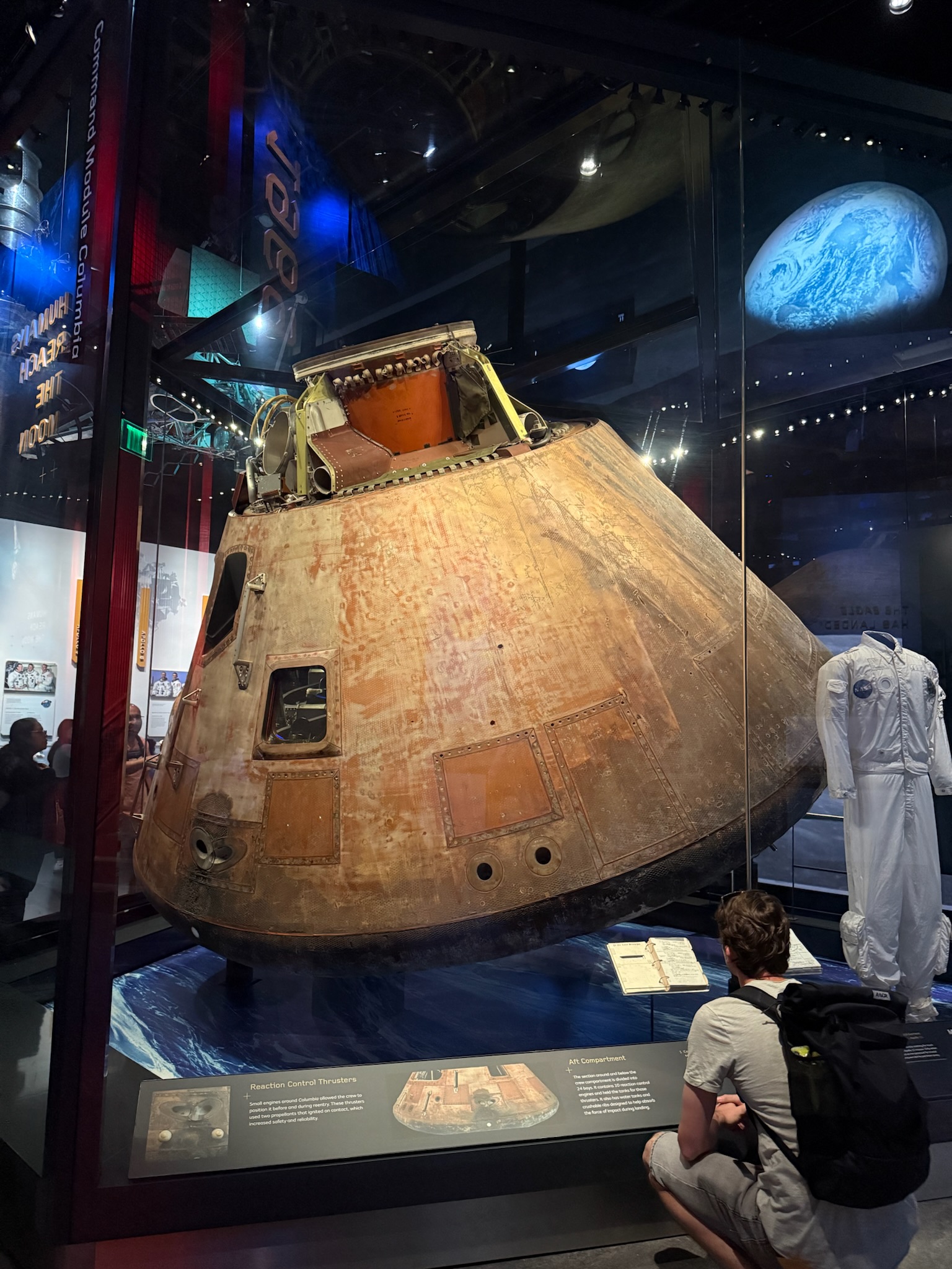 There were several displays about life onboard, such as the food they ate (mostly freeze dried), how they made water, how they went to the bathroom (Keith has no interest in being an astronaut after seeing that), medical supplies they had onboard, emergency items/survival gear they had onboard, etc.