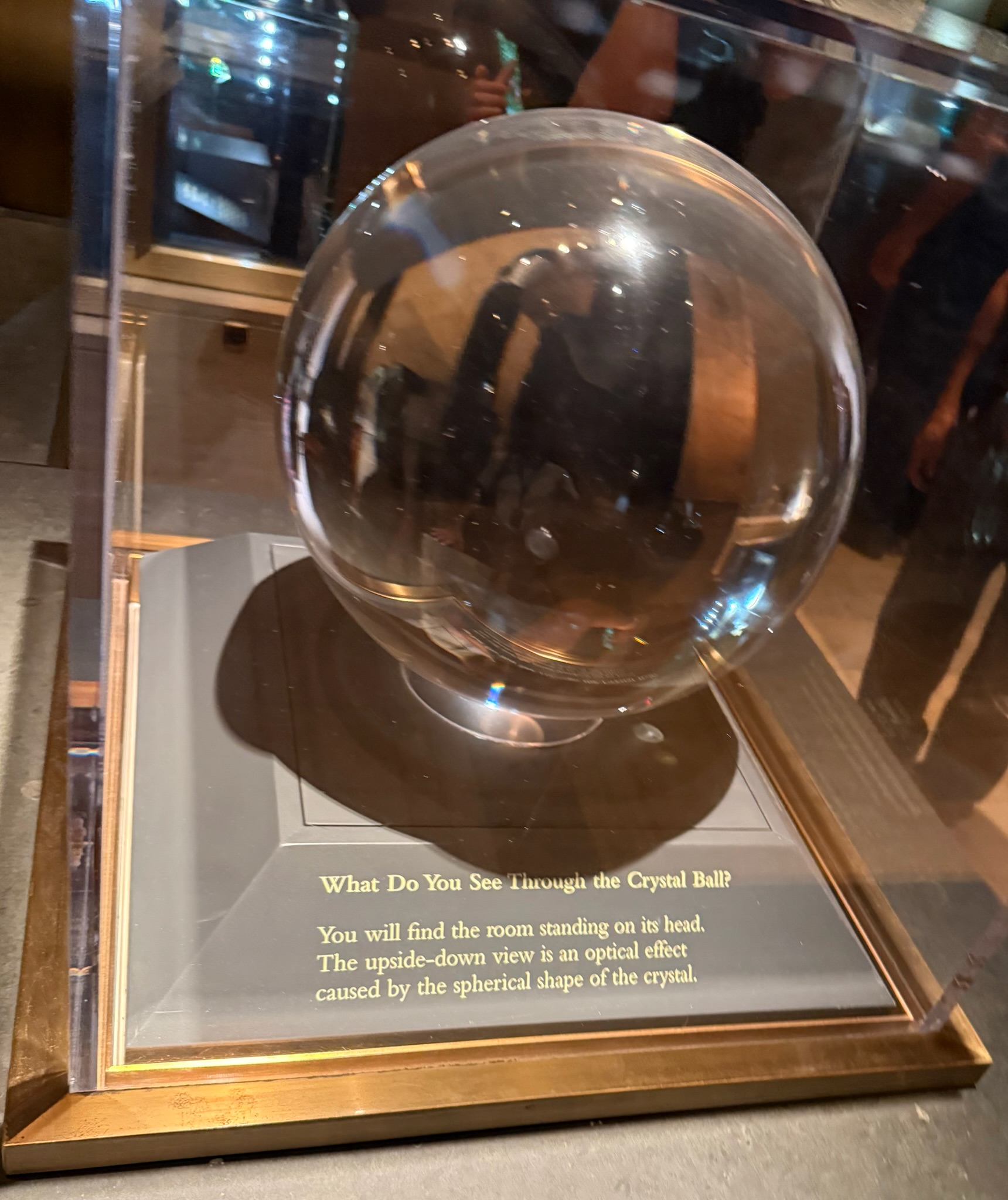 continued… After crystals, we moved on to gems. Gems were mineral crystals that grew naturally within the earth that have been cut and polished. The crystal room had had quite a few people in it compared to the other rooms we’d been in, and the gem room was jam packed. There were so many people that it was hard to get a good look at the objects on display. There were several extraordinarily large gems featured, including a literal crystal ball.