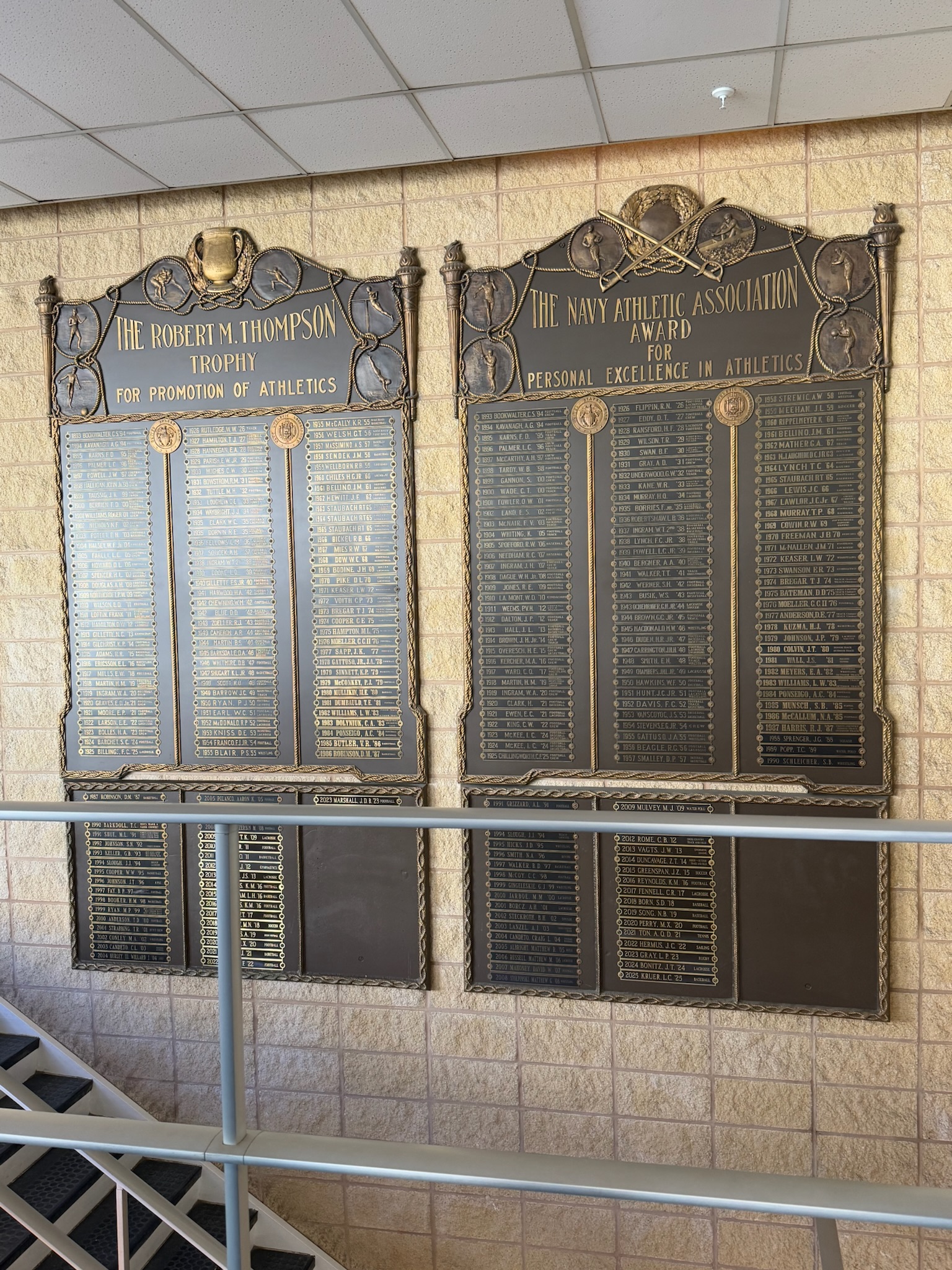We assumed it was the complex being renovated, but our guide said a different complex was under renovation. The building was state of the art. For each area that we passed, he explained which sport(s) were played in that area and gave a list of championships won and notable players. He especially highlighted tennis and rowing. There were many, many trophies, plaques, and awards on display in the halls. The school was clearly very focused on sports.