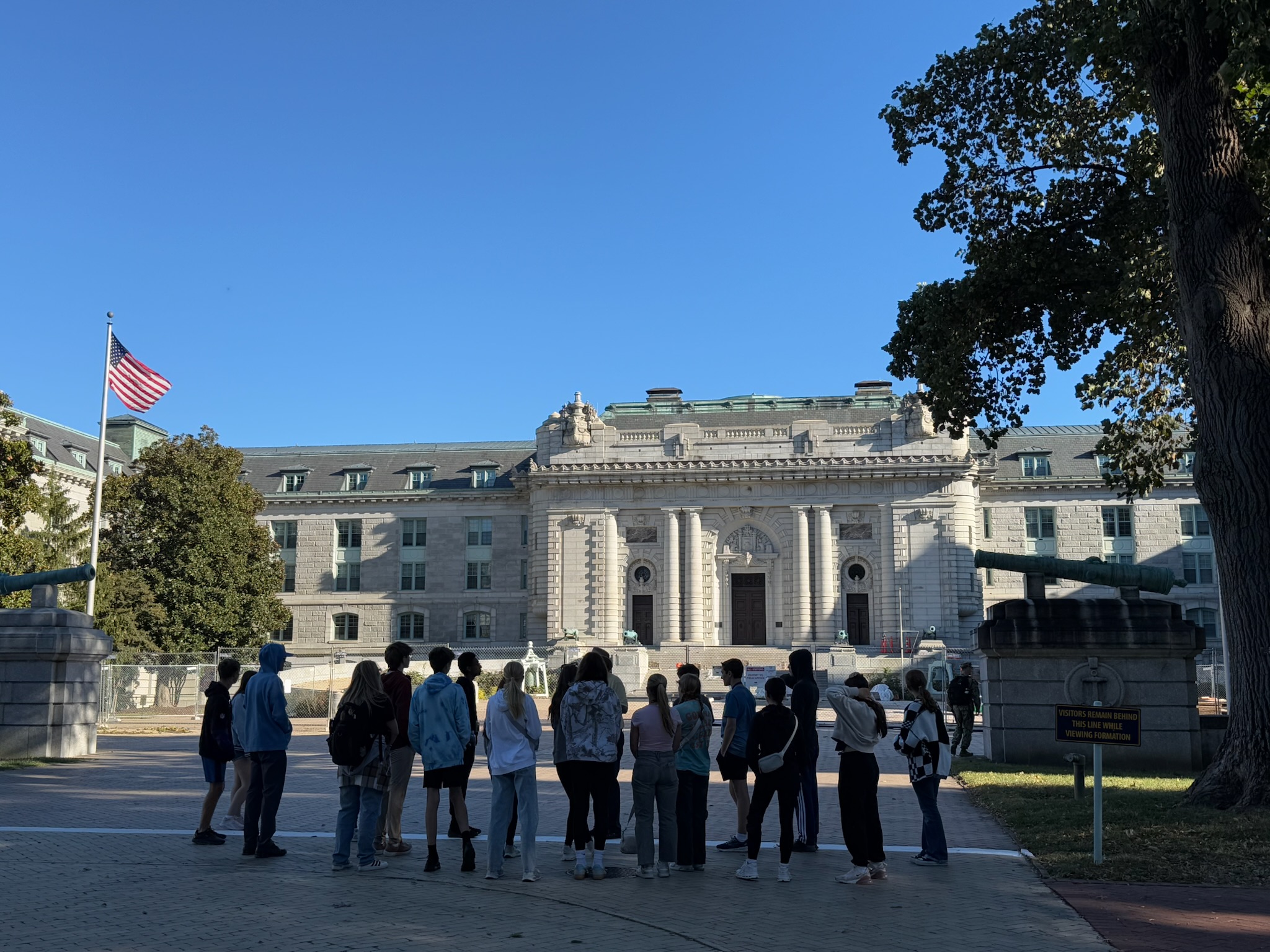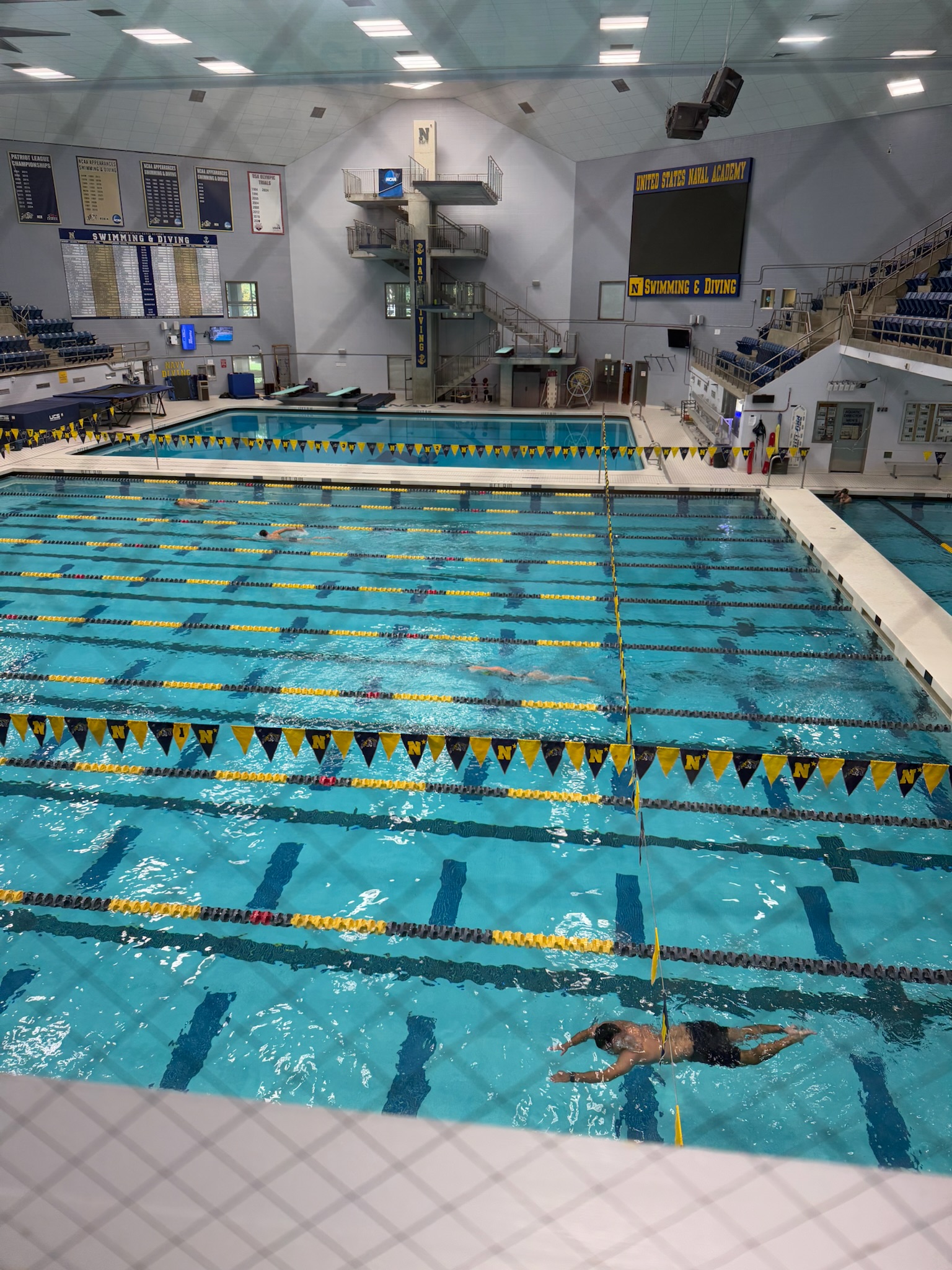 As we walked around, the guide also went into detail about the rigorous physical fitness requirements that the school had. Every cadet had to pass a physical fitness test. 80% of students failed physical exam during the first week of school, and by the 6-week mark, 90% passed. If they didn’t pass the physical fitness test by the end of their first — we couldn’t remember if he said semester or year — they failed out of school. We didn’t remember most of the test requirements, but we did remember that he said that every cadet has to swim 15 laps in full uniform (except shoes) under a certain time, and they also had to jump off the high dive fully clothed.