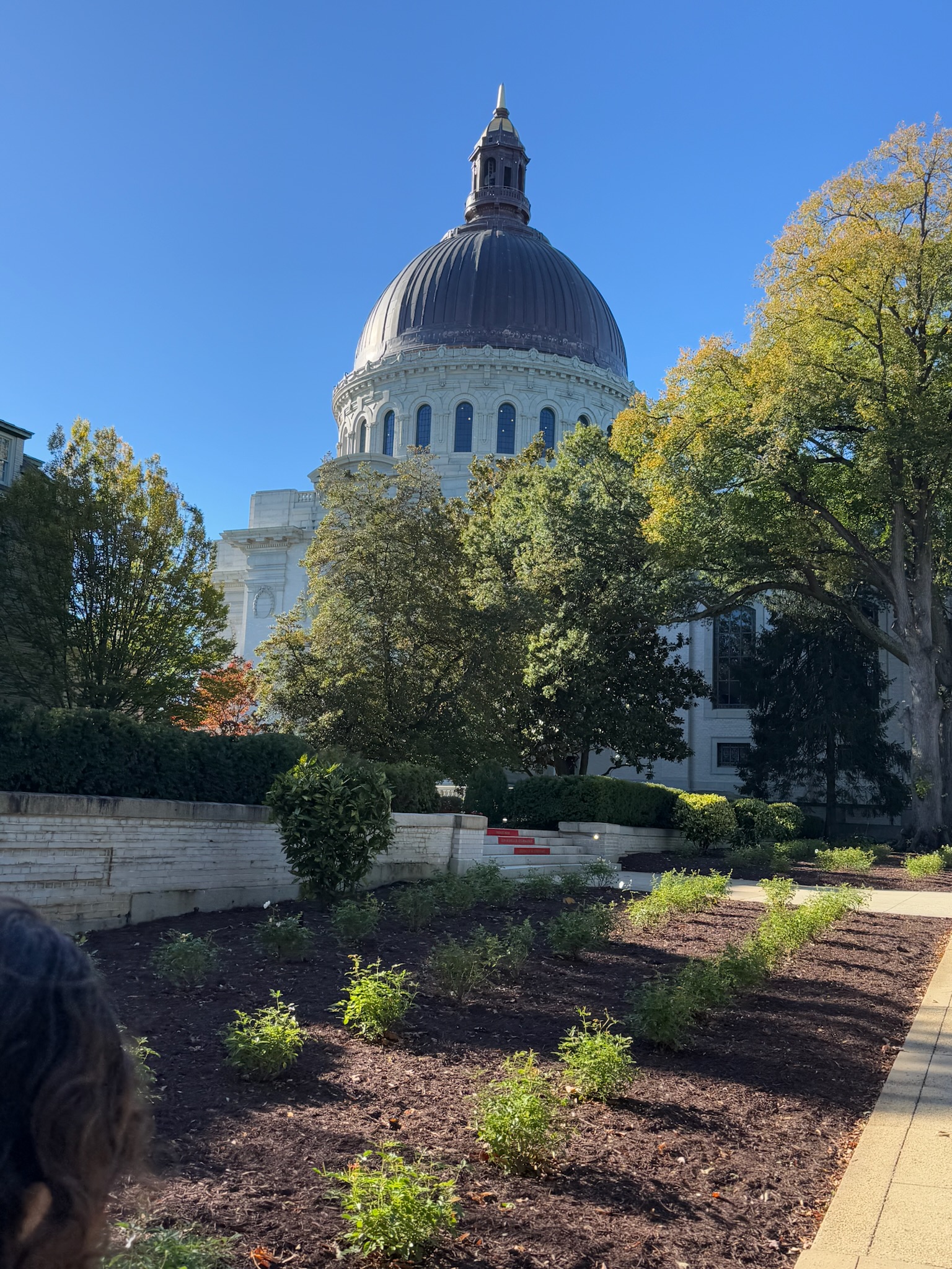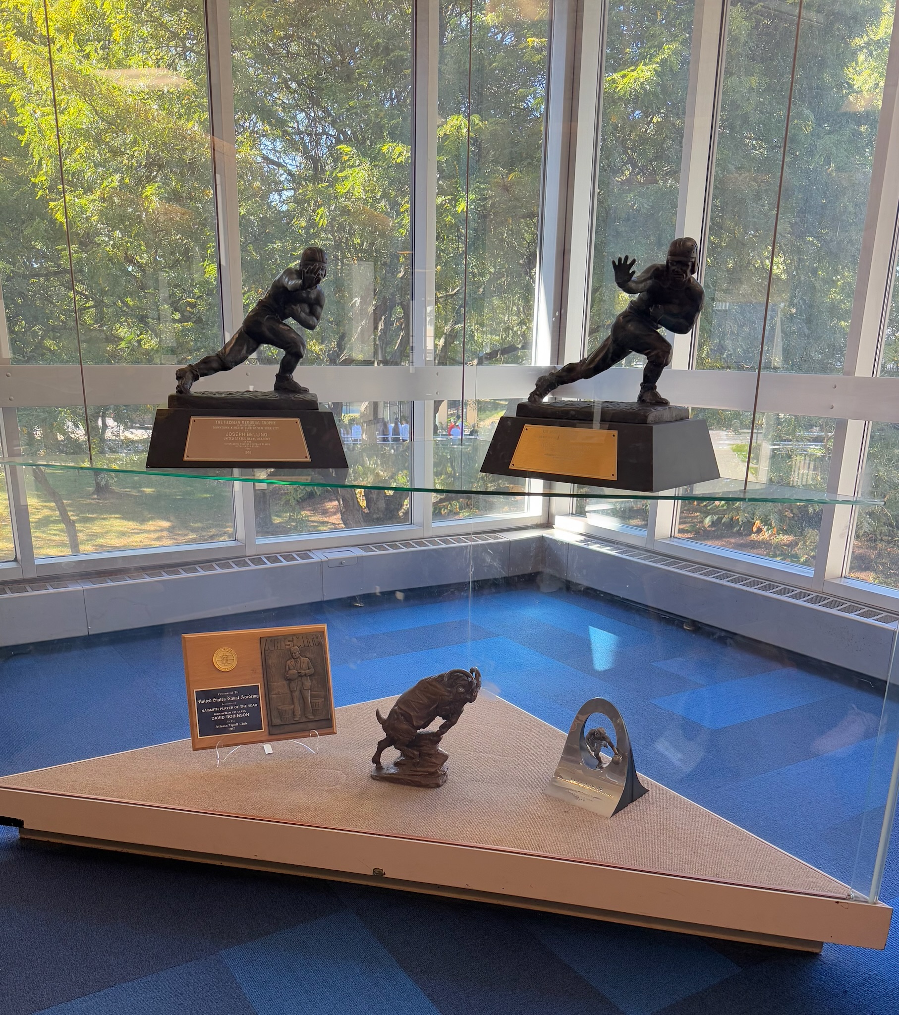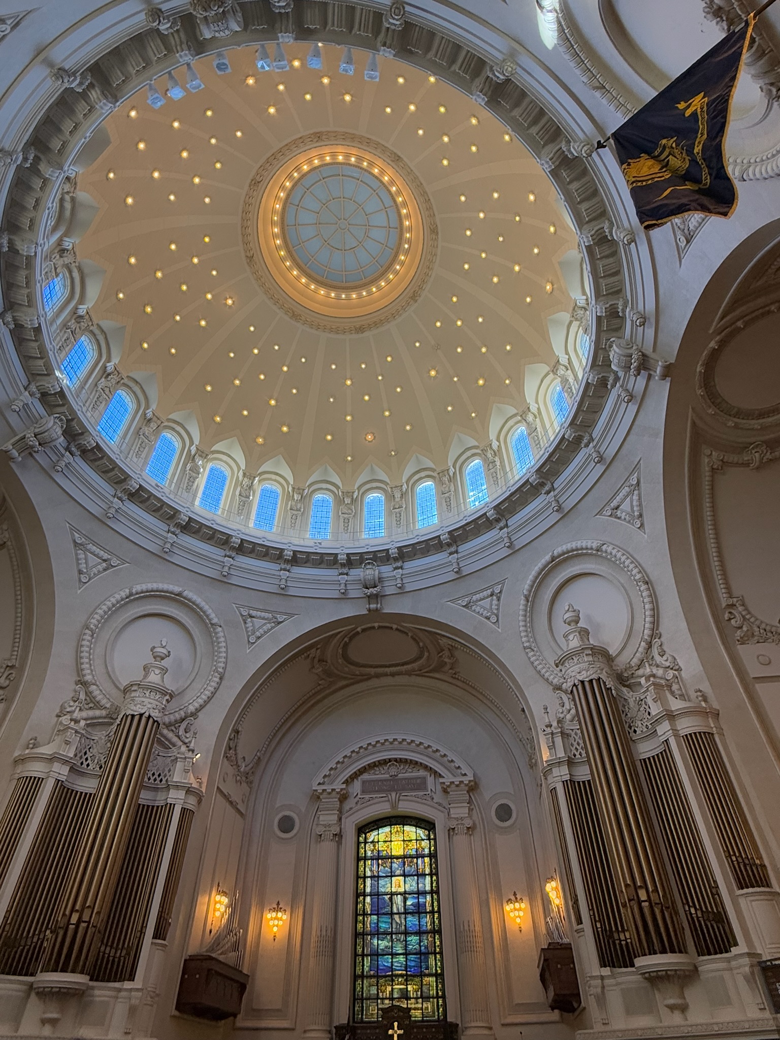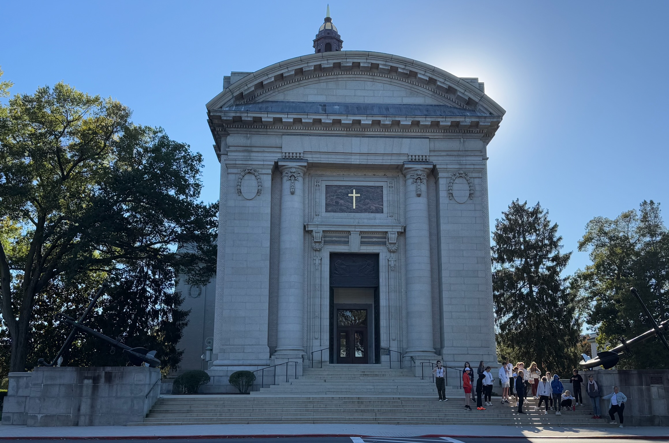 Our guide told us that the original part of the chapel was just the dome in the middle; they extended the church by adding the annex later. He went into detail about all of the renovations and improvements that were made by various alumni classes — and he was pointed about the large dollar amounts spent by each class. He made it very clear to the teens in the group who were considering applying to the Naval Academy that there was an expectation that the alumni would financially support the school for the rest of their lives.