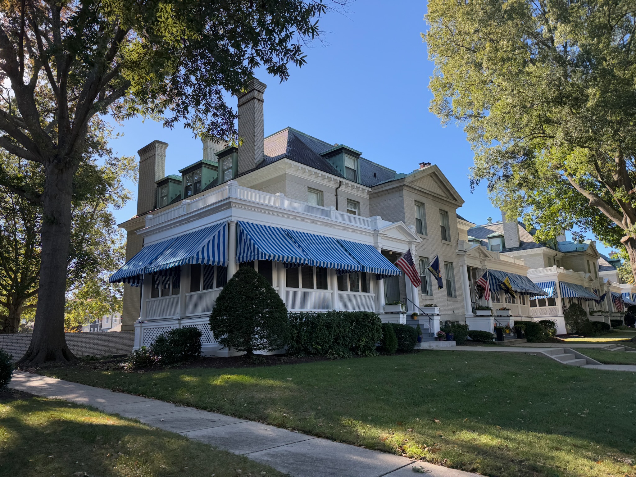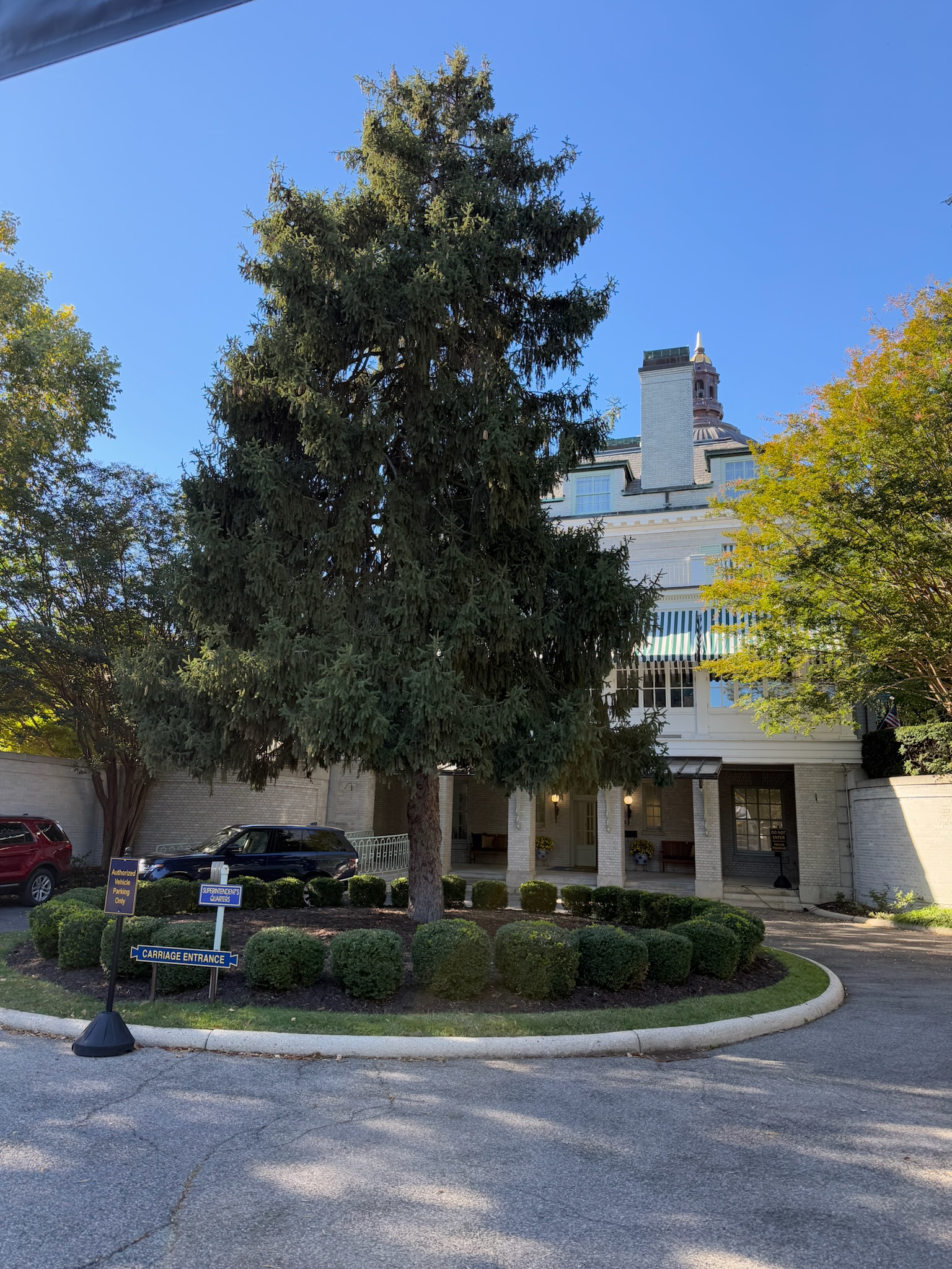 We rounded a corner and came to the superintendent’s house, which was giant. The superintendent was the top person on campus; the commanding officer of the school. According to our guide, the reason for the big house was because the superintendent did a lot of entertaining. We think he said that of everyone in the military, he entertained 2nd most behind the president (the president is also the commander-in-chief of the military), but we’re not 100% sure if we’re remembering that correctly. The first photo is the front, the second photo is one of the sides — which was a long ways away from the front!