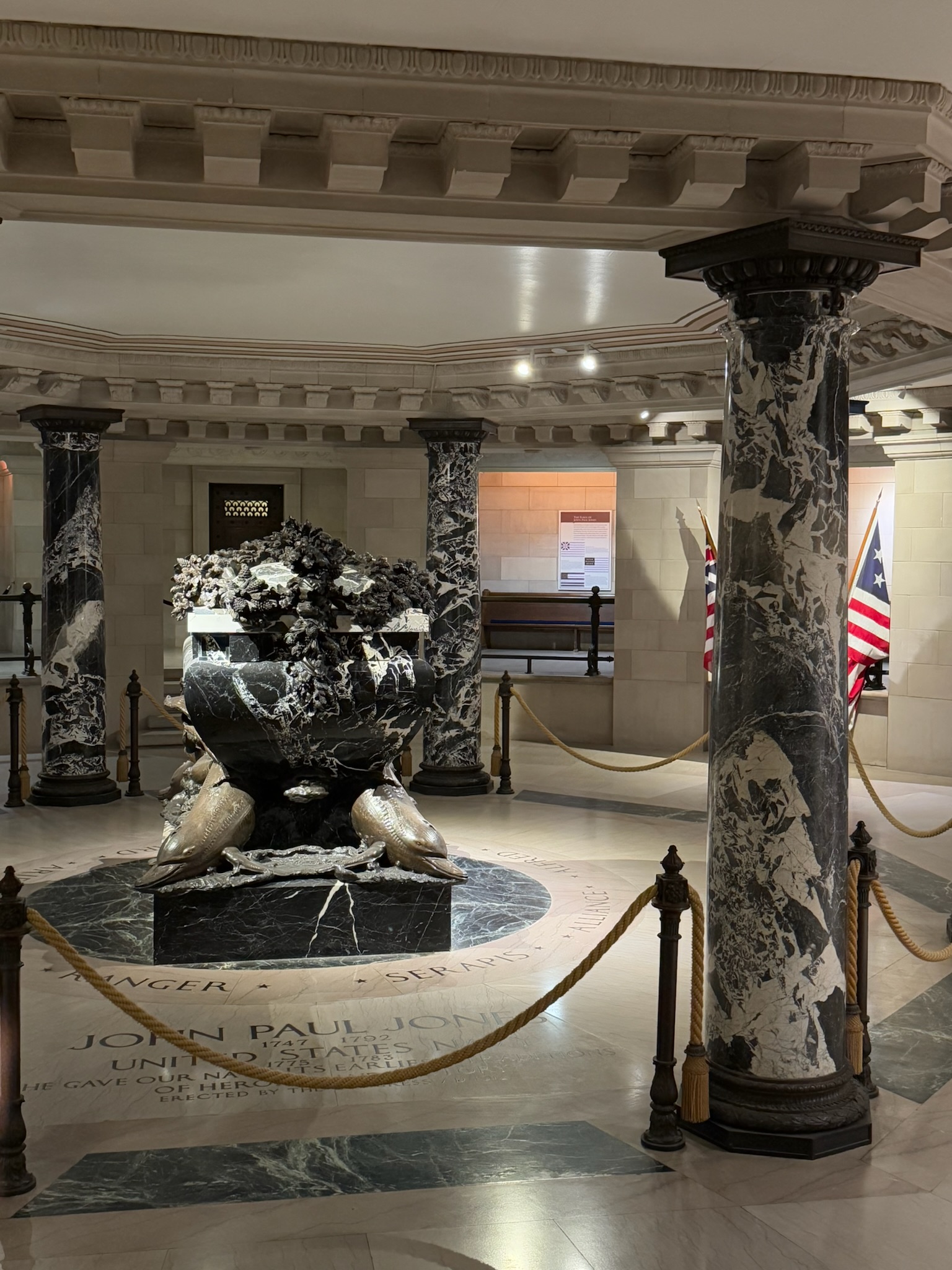 We went outside through a side door, and down a set of slippery stairs to the crypt where John Paul Jones, considered the father of the navy, was entombed.