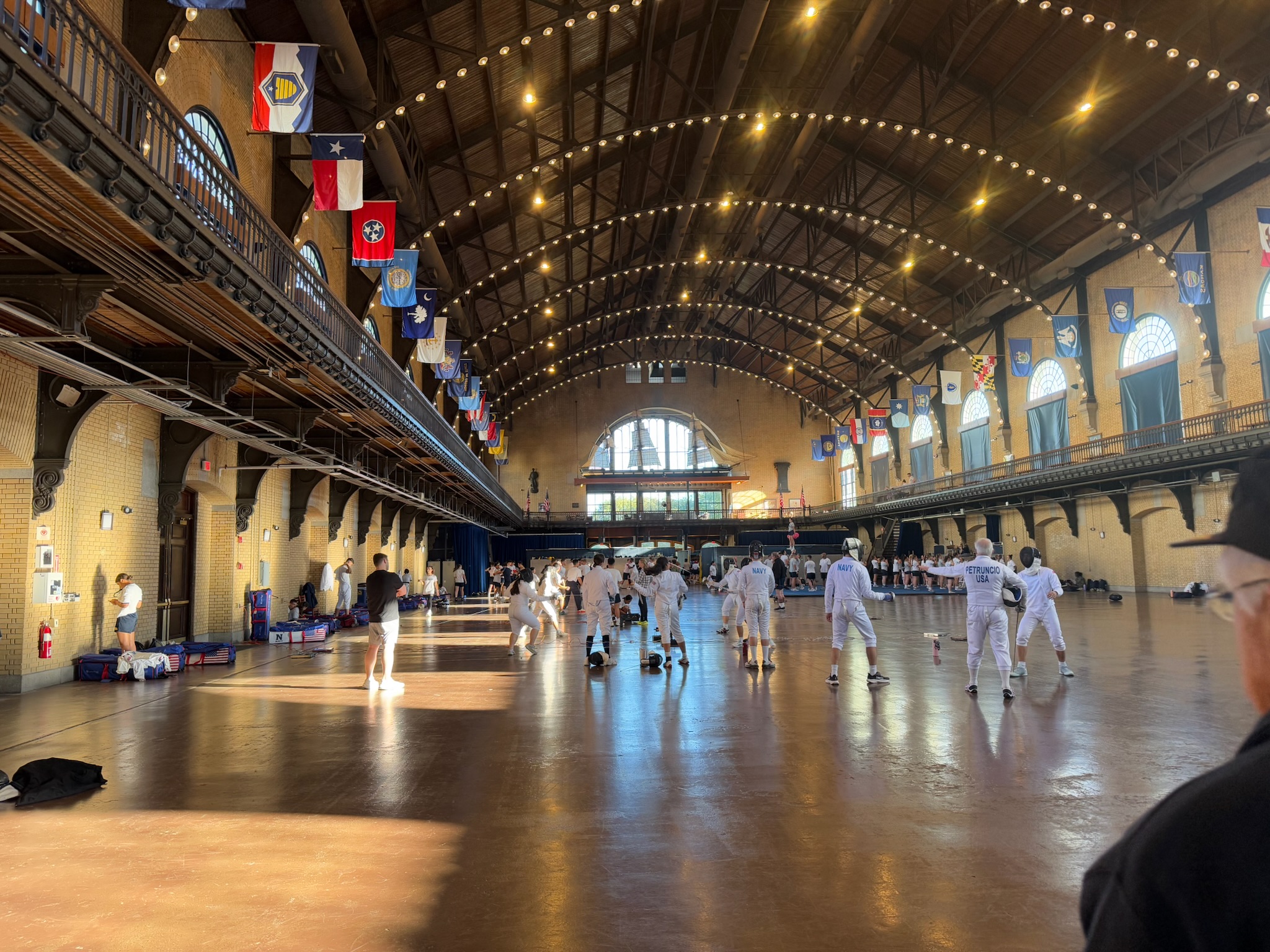 After the guide talked about the memorial statues and torpedoes, we went into yet another sports building where they were wrestling, fencing and boxing. It was definitely not being renovated, so apparently there was a fourth indoor sports complex on campus, too.