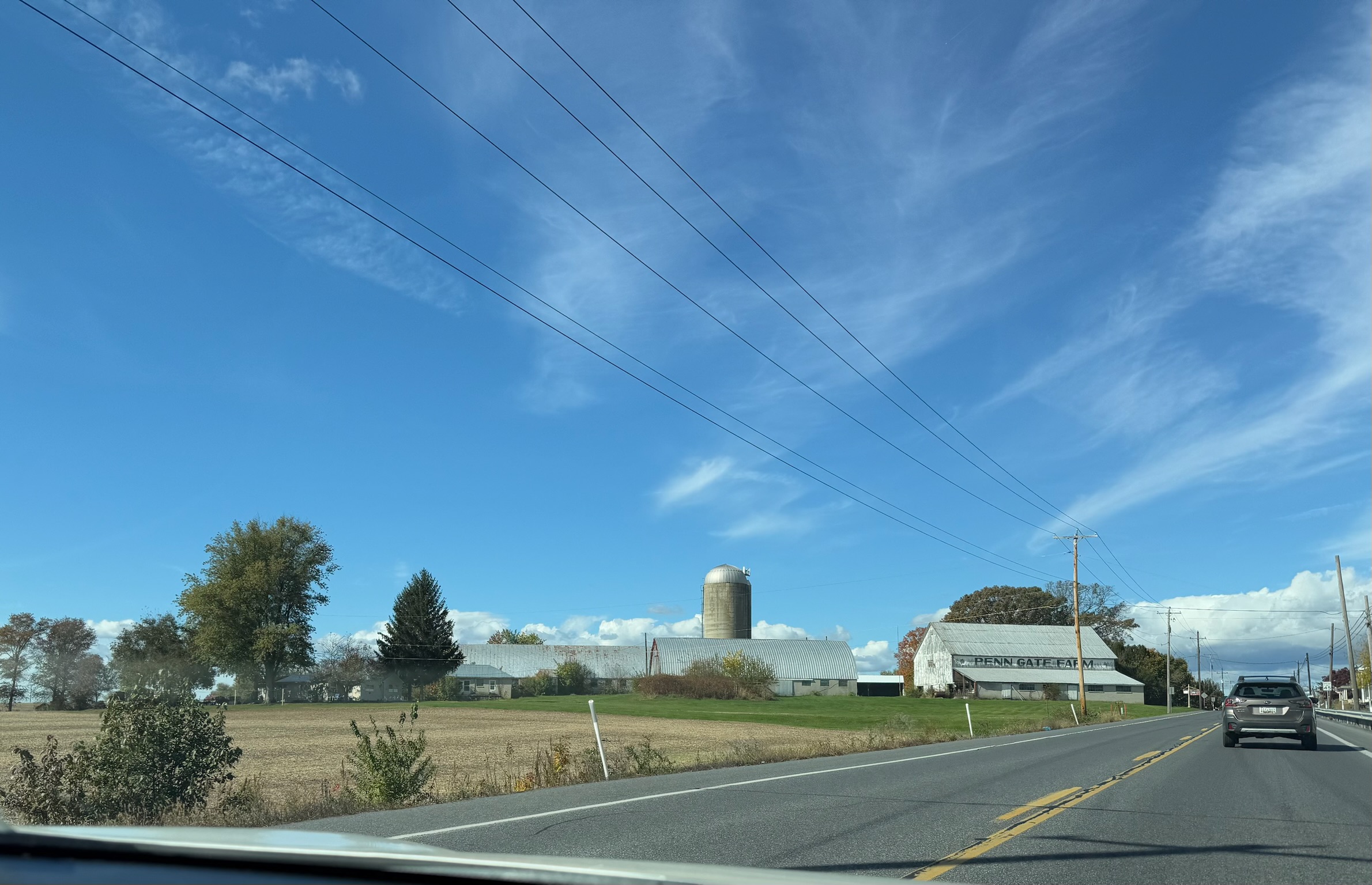Traffic did seriously slow down outside of Baltimore, but it picked up again as soon as we passed Baltimore. We could see Baltimore from the highway, and we had nostalgia about the month that we’d spent there. Eventually, we left the highway for Highway 97, which was a two-lane road that ran through a rural area that looked to be mostly agricultural.