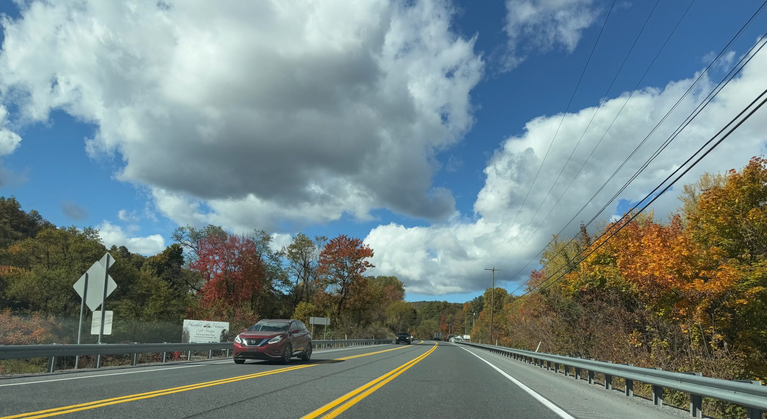 Saturday, October 25 — We decided to take a drive to see the leaves change color. Eric found an app that said that as of this morning, Chambersburg, Pennsylvania was the closest place that had the best ratio of colorful leaves. What was interesting was that last night, it gave us a different town, so clearly, it’s being updated frequently.