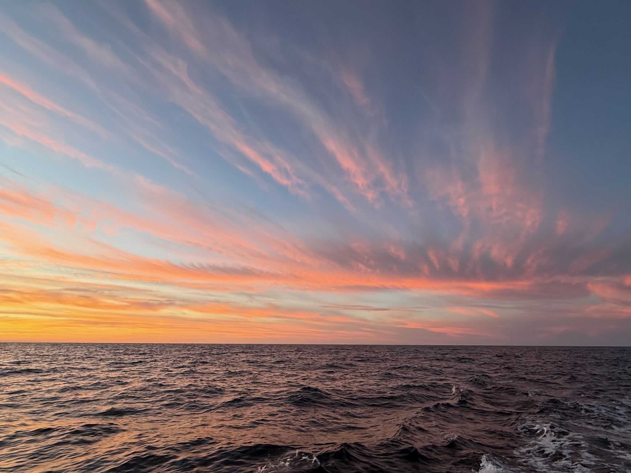 We saw in the news that declassified documents disclosed that Amelia Earhart had been a spy. We’d wondered why there was such a big display about Amelia Earhart and the massive search to find her downed plane at the Postal Museum when she had never worked for the post office. We’re still not sure how exactly she fit into the post office, but we feel like for them to feature her so prominently in their museum, there must have been a connection. Also, we’re thankful that we have Starlink and can get the news in the middle of the ocean. On our circumnavigation, all we had was the BBC over the radio once in a while (if we were lucky). It made the time at sea go by so much faster to have lots of online content available. Here was sunset: