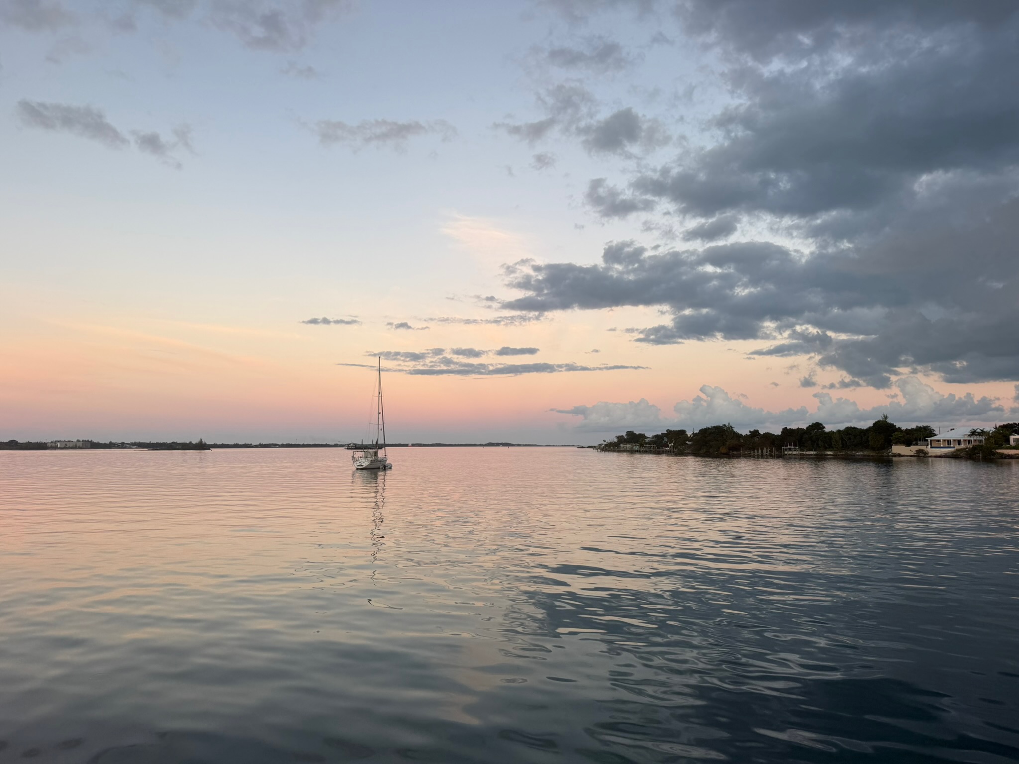 The majority of the anchorage had sea grass on the bottom, but we did manage to find a patch of sand to drop the anchor into. When Eric backed down on the anchor, the boat jerked far more forcefully than we’ve ever experienced before. Keith wasn’t holding on to anything and lost his balance.