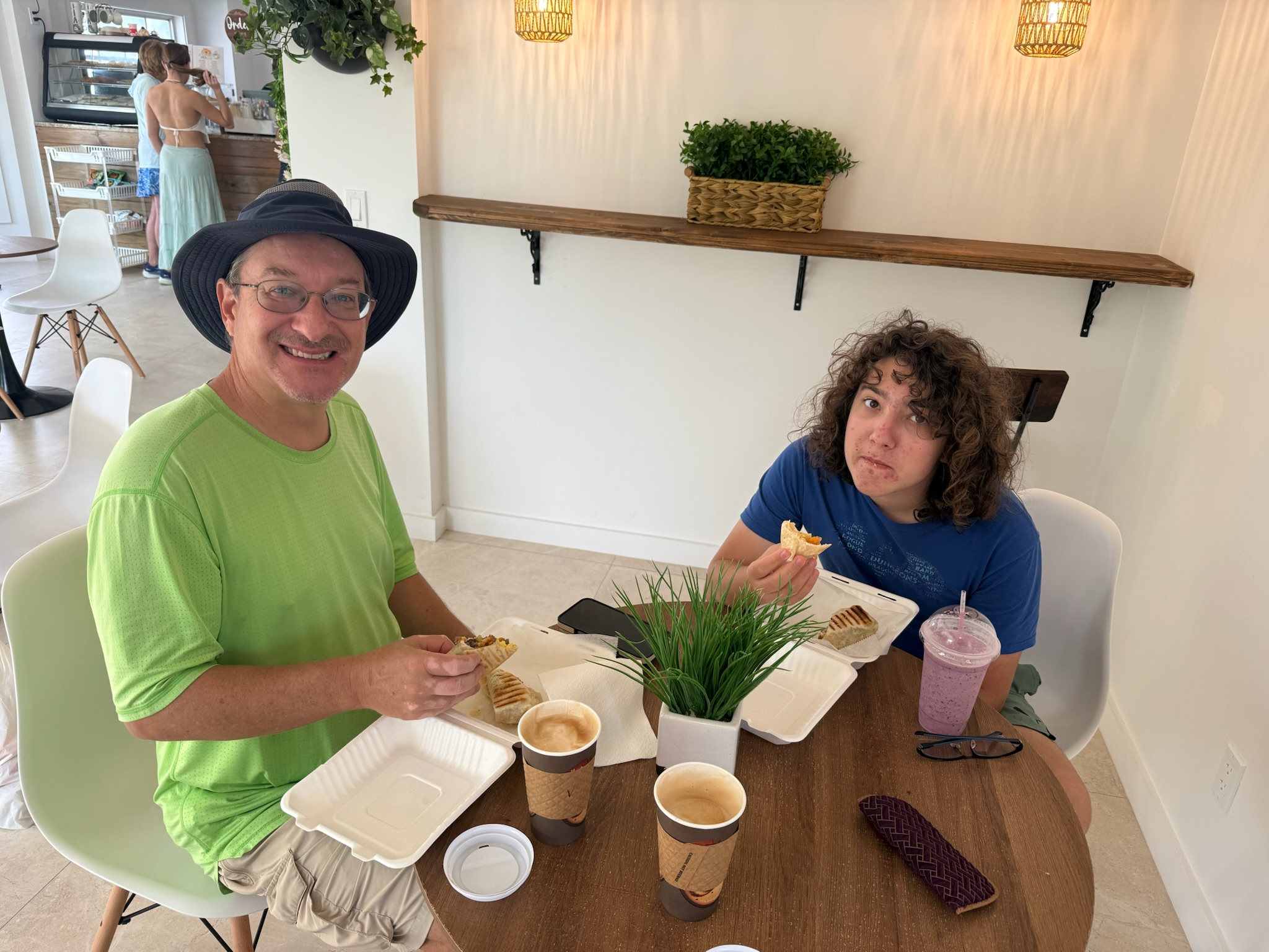 Yesterday, we’d walked by a cafe that looked promising. This morning, we took the dinghy over to the dock by Snappas and walked over to the cafe for breakfast.