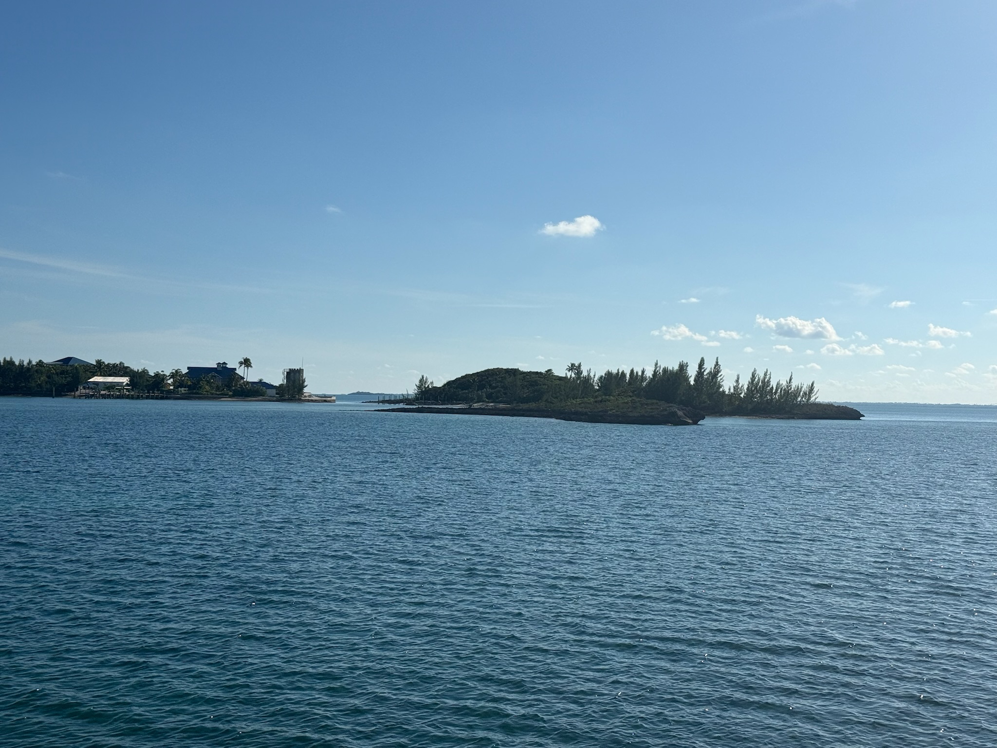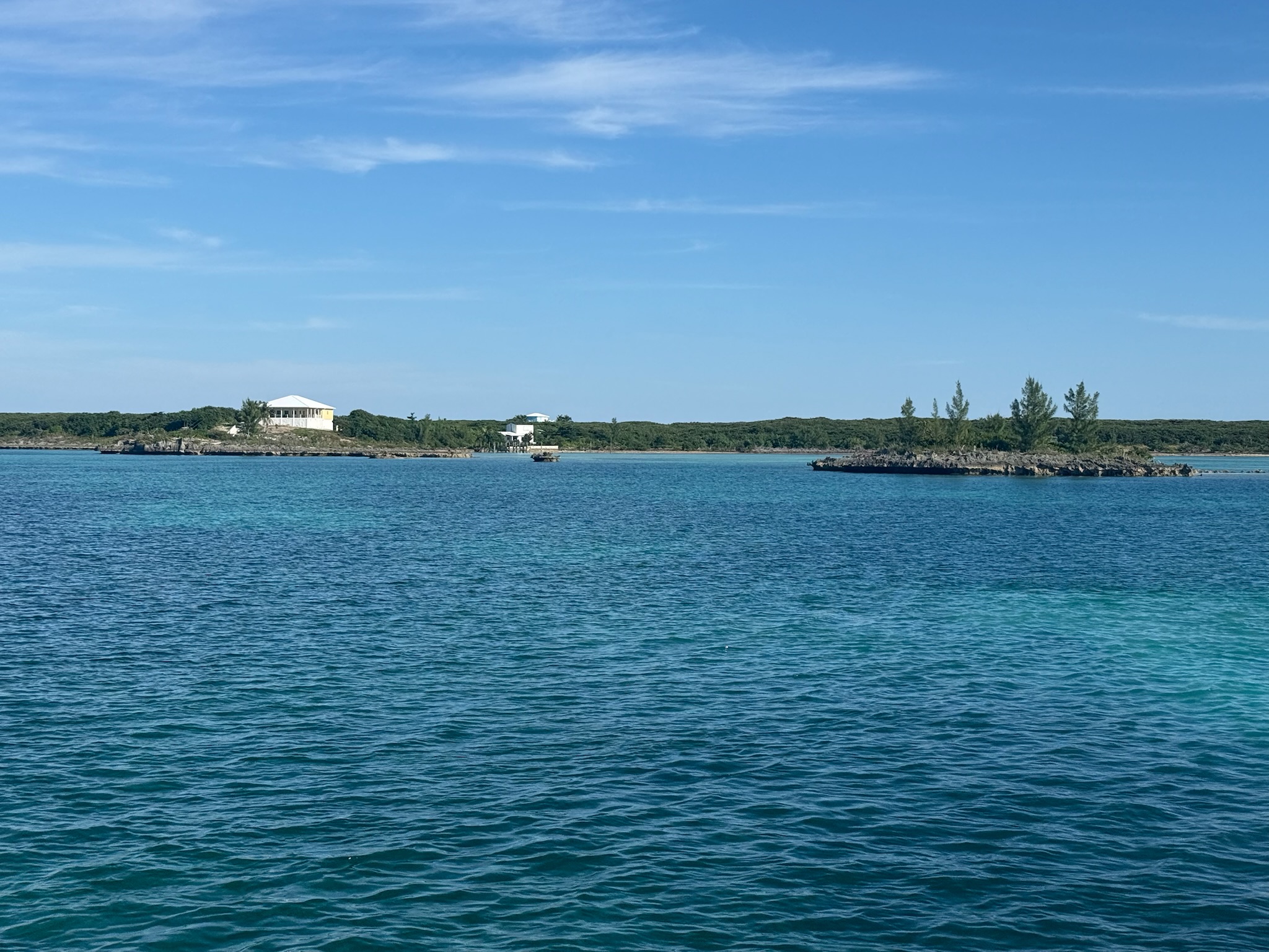 We chose a route on the outside of the reef, and took about three hours to get there. Seas were calm. The area around Tiloo Cay looked to be mostly residential.