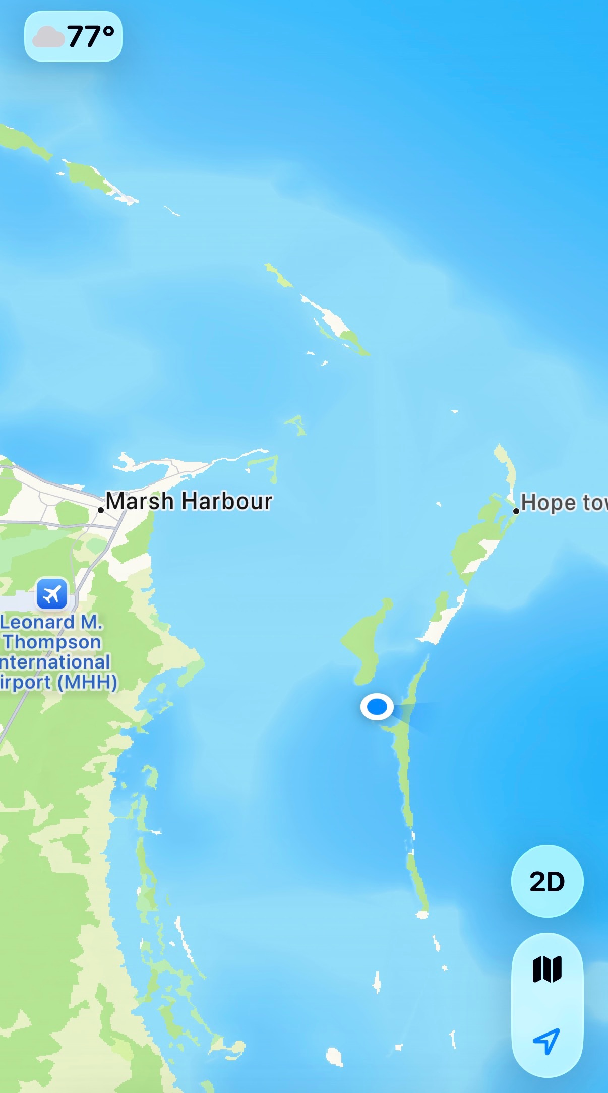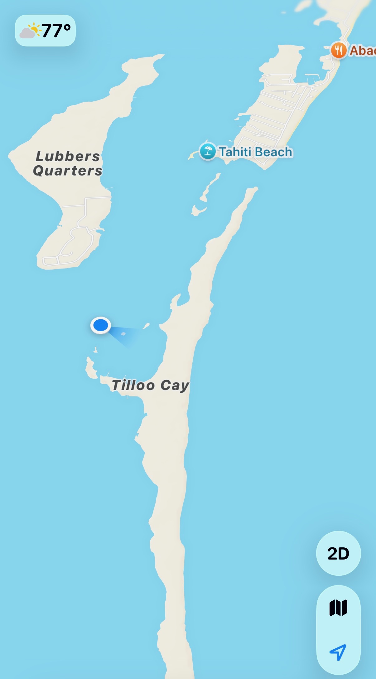 The anchorage had a little bit of swell, but it was gentle and we barely moved. The water was crystal clear. It was a pleasant spot. Here were a couple of maps so you could see how far we’d gone from Marsh Harbor and exactly where we dropped anchor.