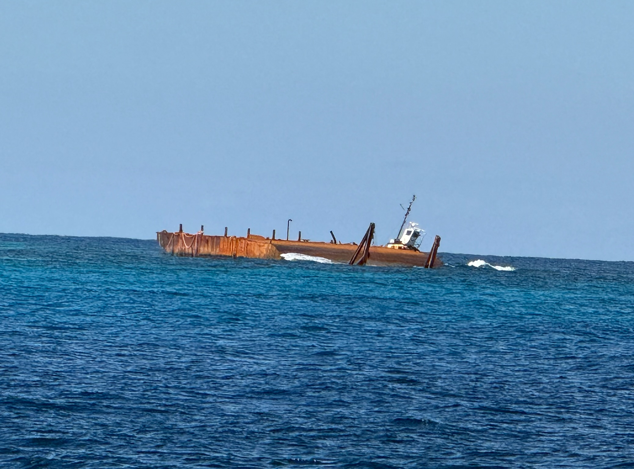On the way, we passed a sunken vessel. We’d actually passed it on our way into Marsh Harbor on Monday. It had still been dark, so we hadn’t been able to see it, but thanks to one of the apps that we use, No Foreign Land (NFL), we had been aware of it. Per NFL, it had (relatively) recently hit the reef and sunk, so it wasn’t on Kosmos’s navigational charts. We’re thankful for NFL for many reasons, and one was because it often had the most up to date information.