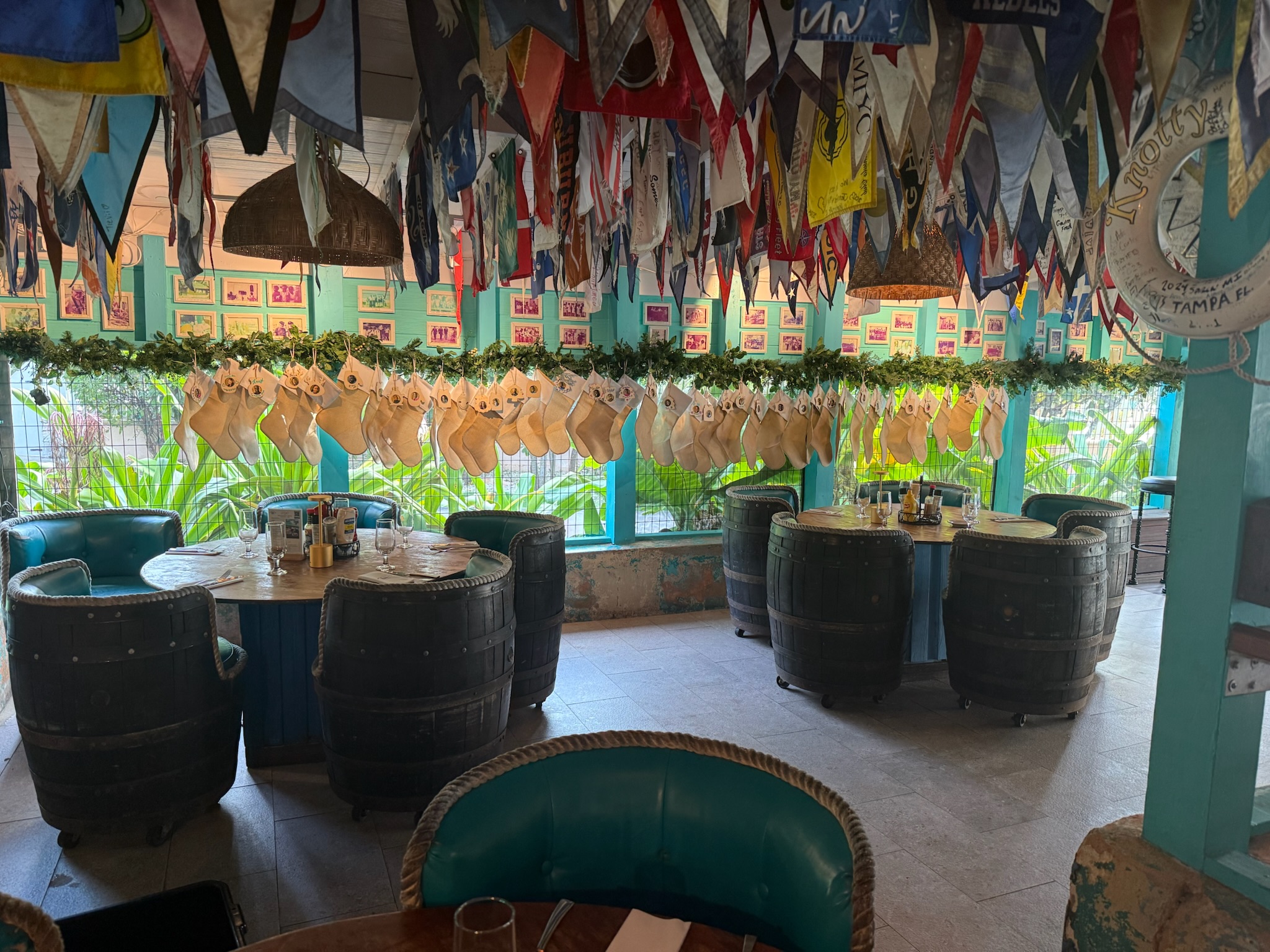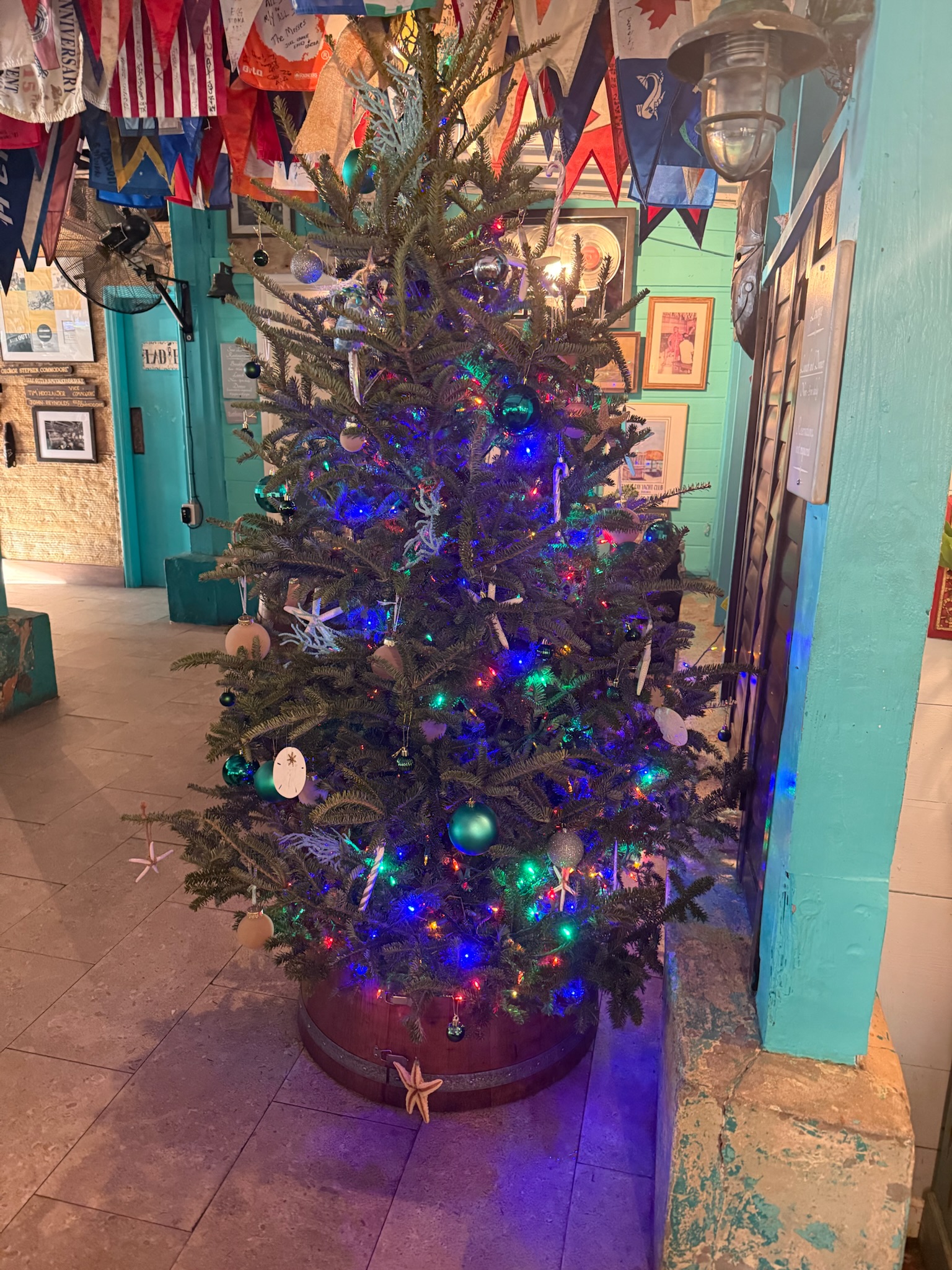 They dropped off the trash at the yacht club (they charge a disposal fee of $8.80 per bag), had lunch at the yacht club’s restaurant, then went for a short walk. The yacht club had some Christmas decorations up.