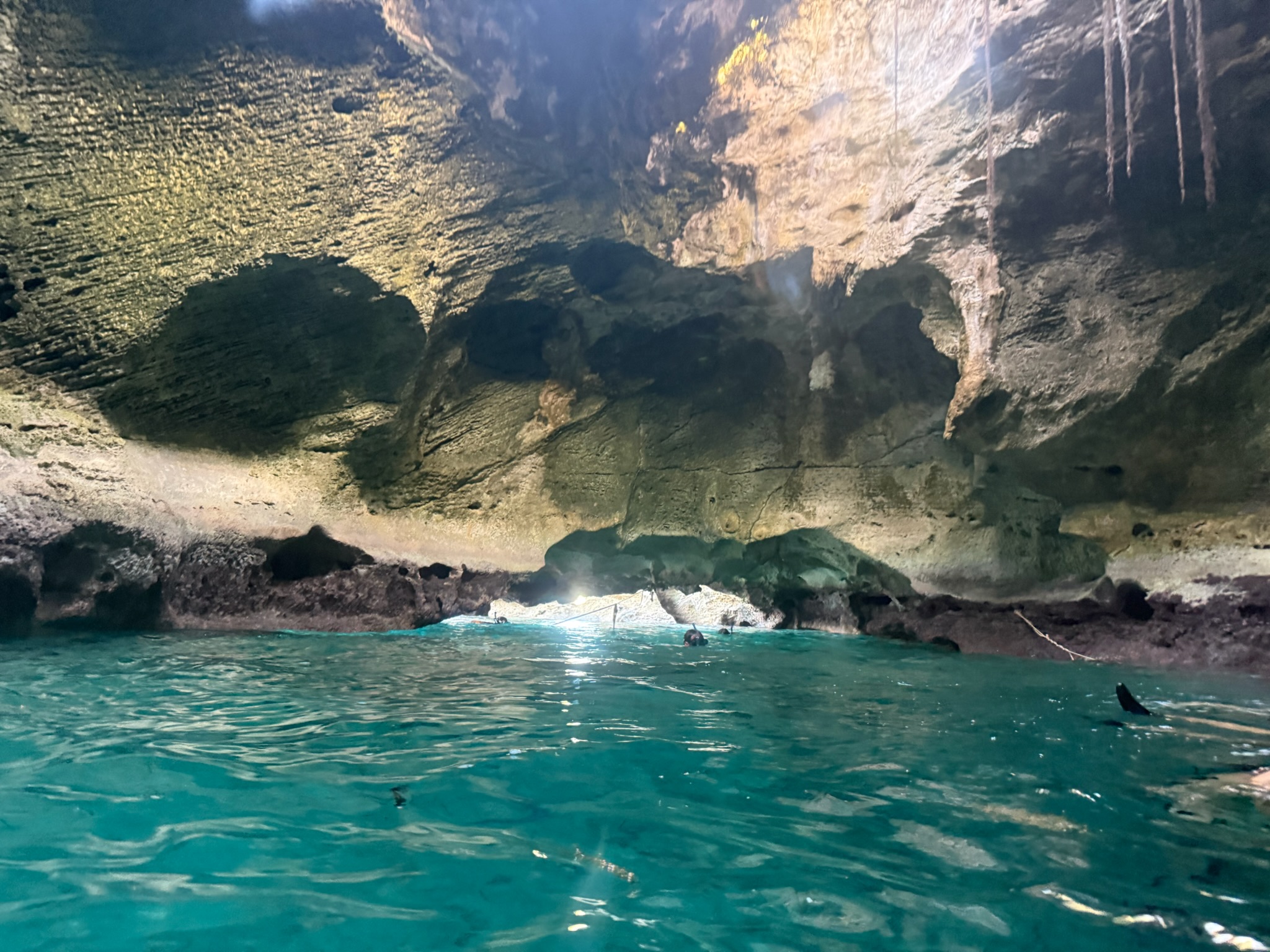 Interestingly, different parts of the cave had different amounts of current. Eric swam the majority of the time, staying in the areas with less current. Christi mostly held onto the rope and kept her face in the water. Keith did about half swimming and half staying still and watching the fish.