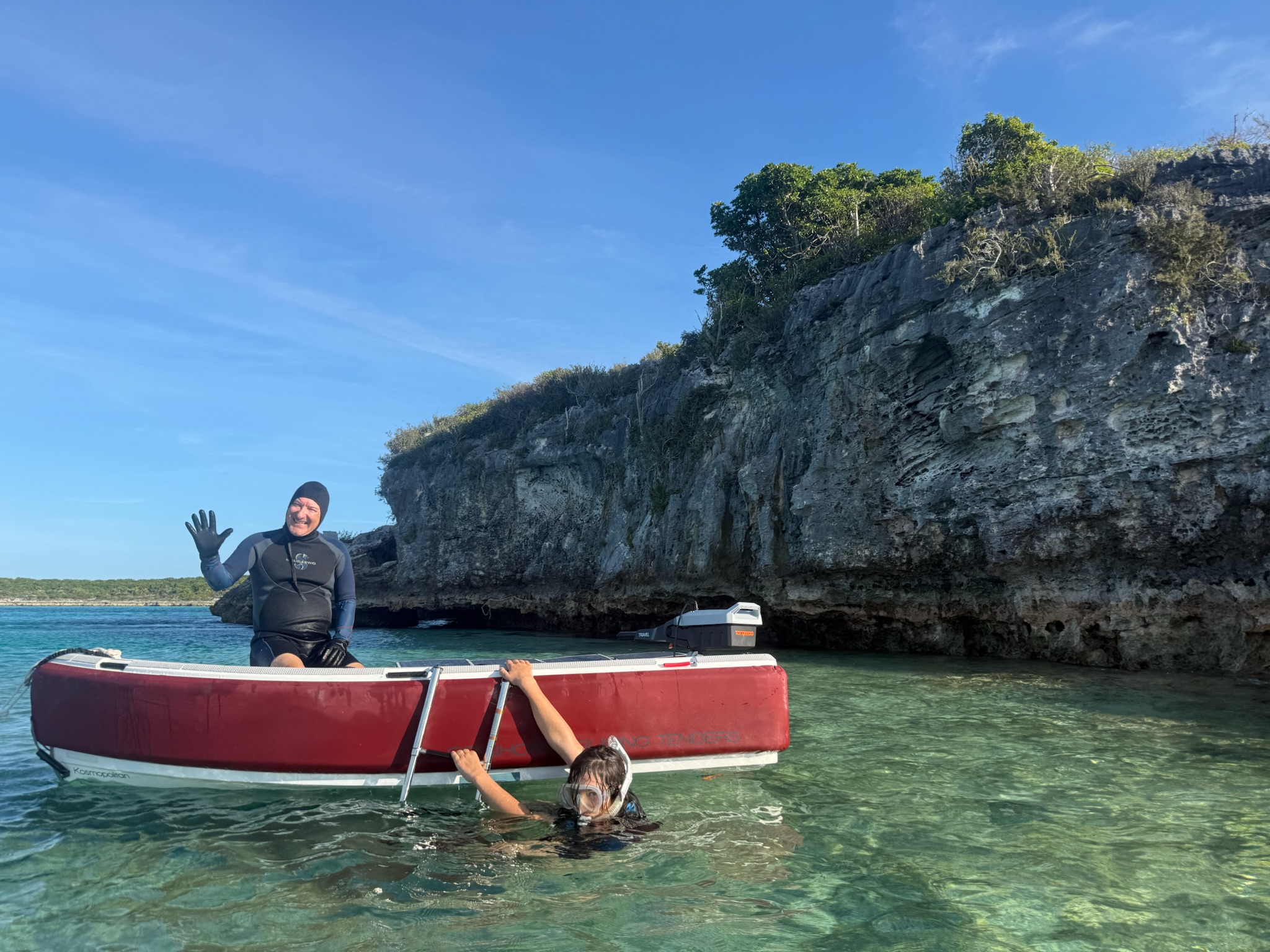 This morning, the wind shifted back to the prevailing winds from the east. This meant we could finally go back to Thunderball Grotto. Coincidentally, this week Keith studied limestone rock and its erosion patterns in science. Thunderball Grotto was the perfect place to see the effects of erosion!