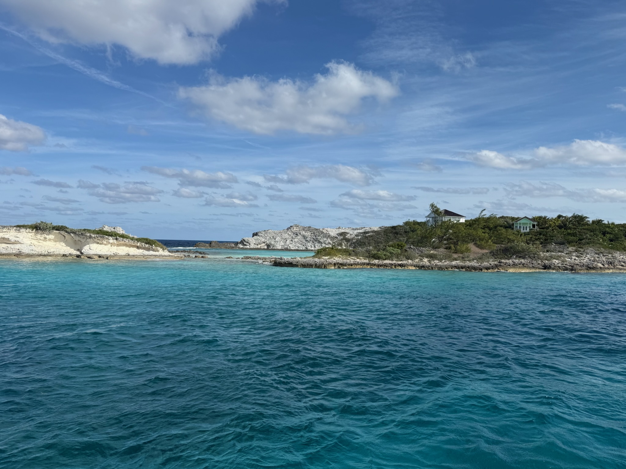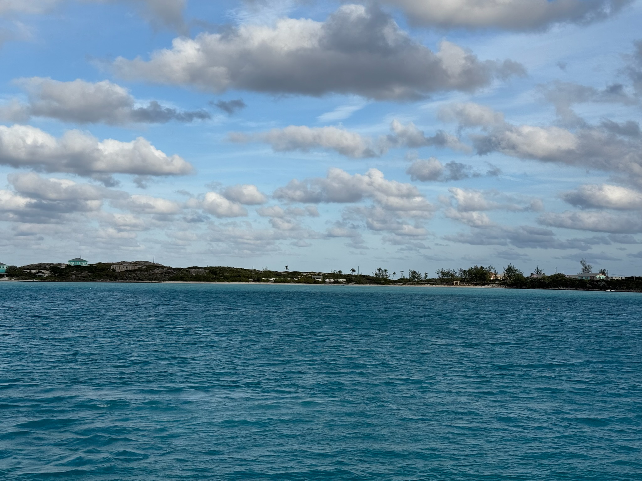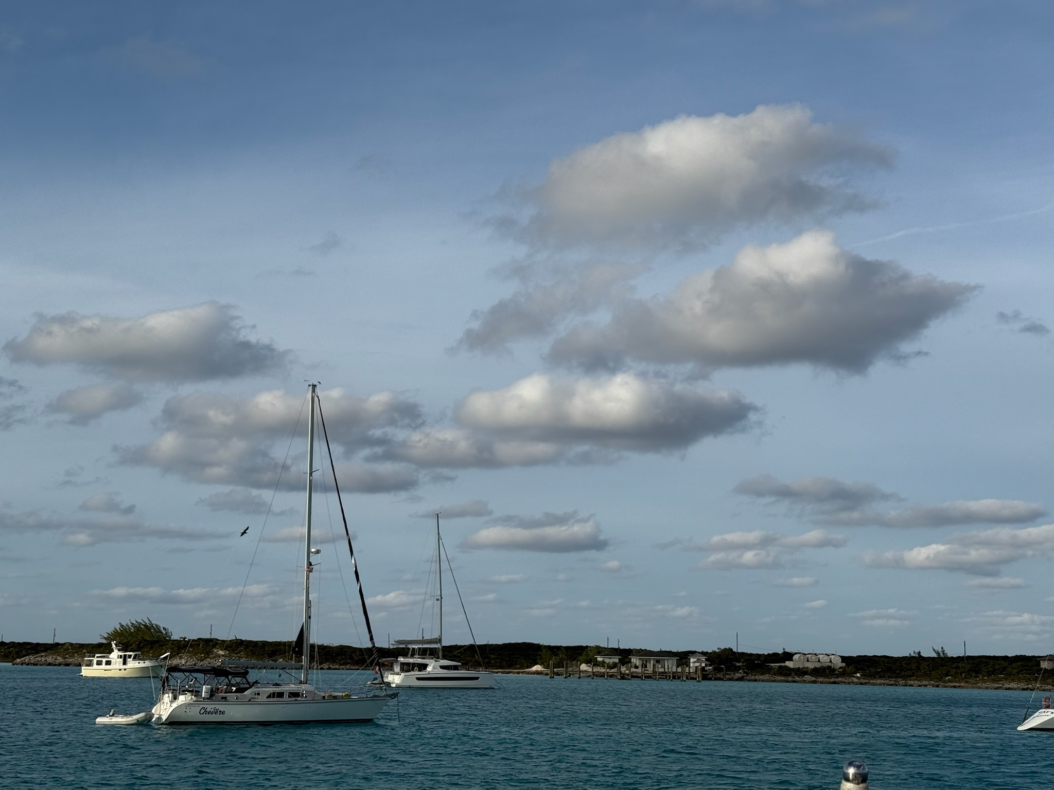 Once we finished snorkeling, we headed back to Kosmos and showered. It was getting even rollier than it had been yesterday, and we decided it was time to move on to a more protected location. Eric consulted the charts and decided on Black Point, which was a short ride south.
