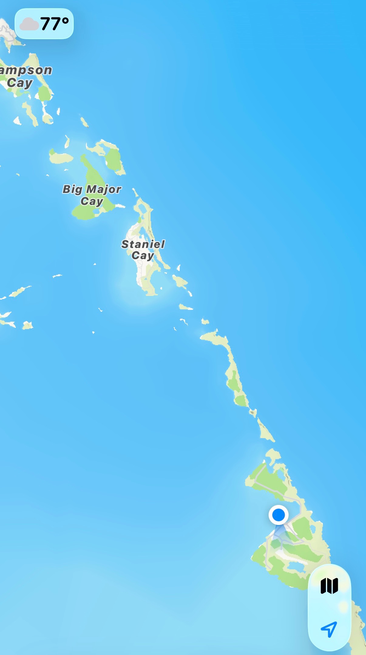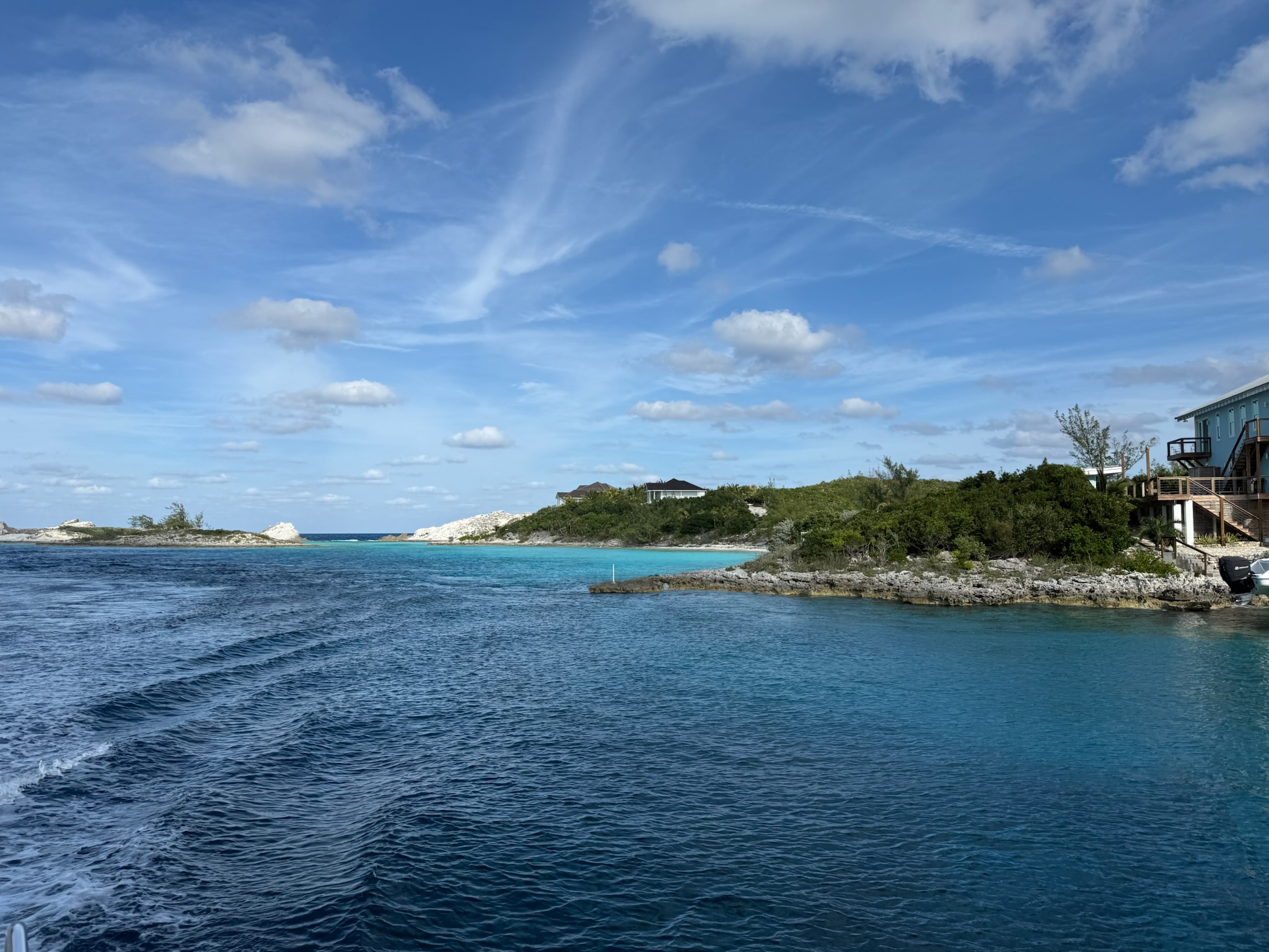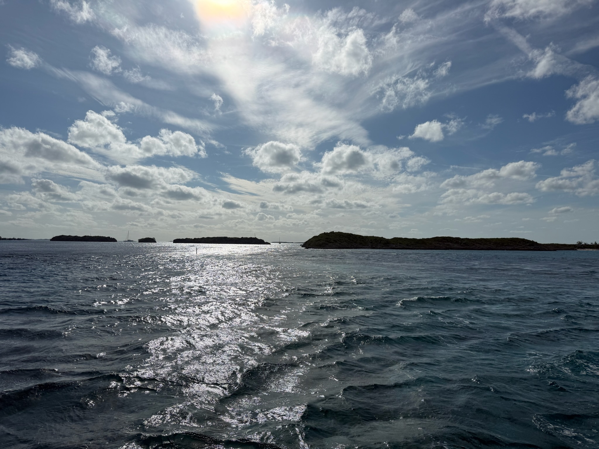 Once we finished snorkeling, we headed back to Kosmos and showered. It was getting even rollier than it had been yesterday, and we decided it was time to move on to a more protected location. Eric consulted the charts and decided on Black Point, which was a short ride south.