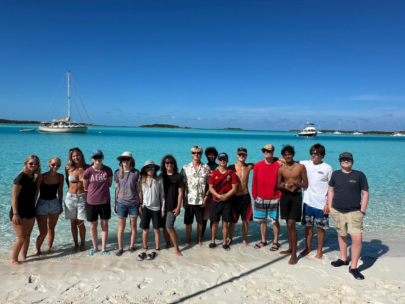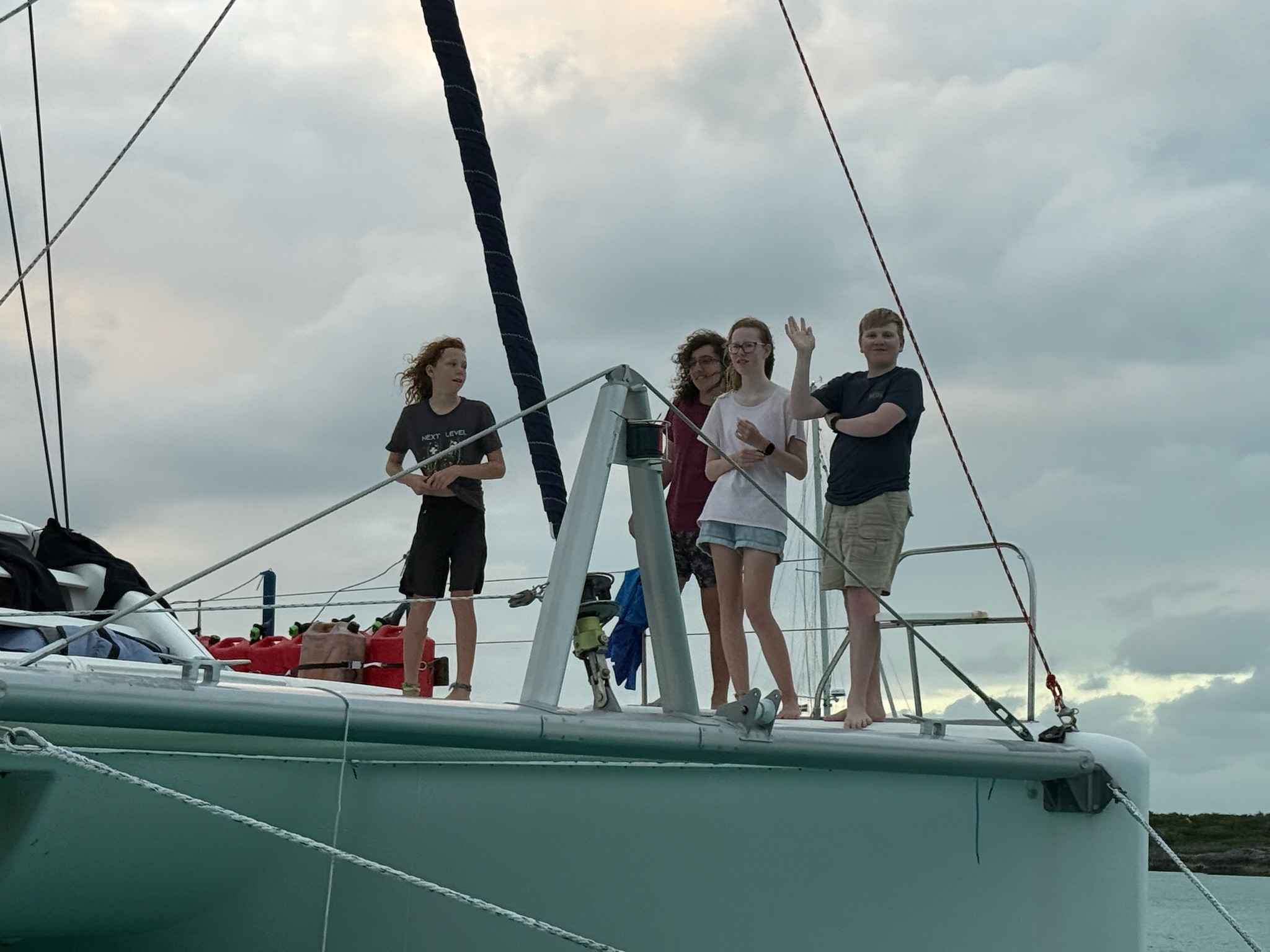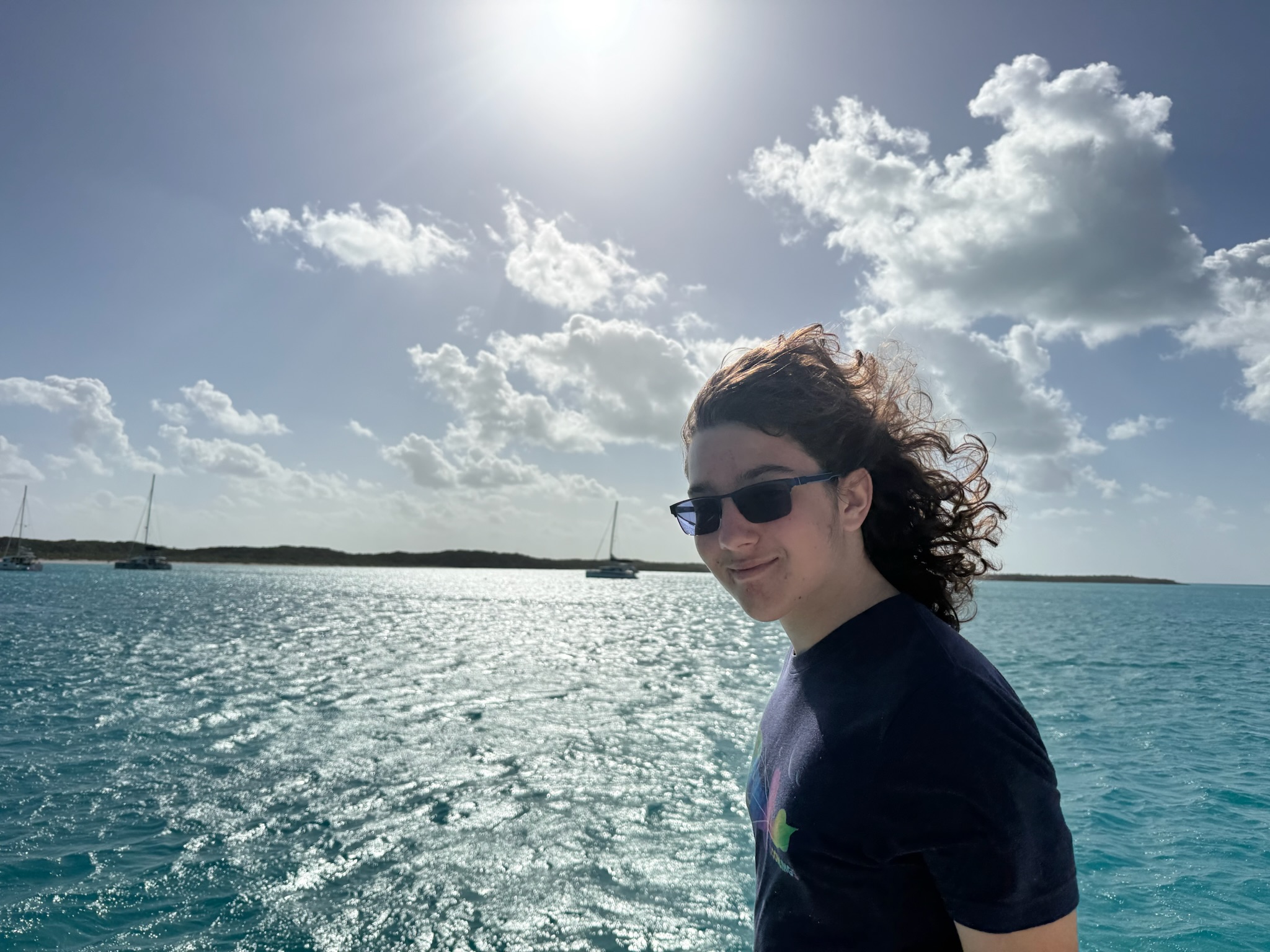 Mercredi, nous sommes allésles à Warderick Wells. Maman et papa sont allés faire une promenade pendant que je suis allé à Zimovia. Ils avaient fait quelque chose de très cool où ils avaient attaché une ligne très longue à leur mat, et ils avaient attaché l’autre côté à leur dinghy. Des personnes s’accrochaient à la ligne, puis ils allumaient leur dinghy. La ligne te hissait dans l’air, puis tu la lâchais et plongeais dans l’eau. C’était trop amusant! Après ça nous avons fait du tubing, puis nous avons joué sur la plage. Pendant la soirée on a fait une chasse au trésor avec des cannes à sucre sur la plage.
